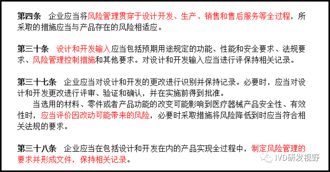 2.法规要求提到风险的医疗器械管理文件非常多,越是下层与风险密切相关的文件,风险要求越具体,如《医疗器械不良事件监测和再评价管理办法》,出现风险达51次。以下仅摘录《医疗器械监督管理条例》、《医疗器械生产监督管理办法》中提到的风险条款。2.1《医疗器械监督管理条例》提到风险共21处,主要在以下方面需要考虑风险,应用风险管理进行监管。 ③医疗器械注册或备案人应制定和实施上市后的风险管控计划,报告不良事件产品风险控制情况:④第三类医疗器械中临床高风险产品的临床试验需要审批: