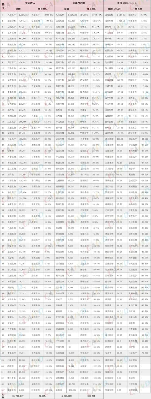 2022上半年诊断上市公司关键数据排行(万元)