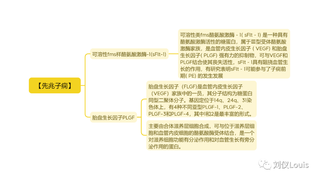 【先兆子痫】 可溶性fms样酪氨酸激酶-1(sFlt-1) 可溶性类fms酪氨酸激酶-1( sFlt-1) 是一种具有酪氨酸激酶活性的糖蛋白,属于Ⅲ型受体酪氨酸激酶家族,是血管内皮生长因子 ( VEGF) 和胎盘生长因子( PLGF) 强有力的抑制物,可与VEGF和PLGF结合使其丧失活性,sFlt-1具有阻挠血管生长的作用,有研究表明sFlt-1可能参与了子痫前期( PE) 的发生发展 胎盘生长因子PLGF 胎盘生长因子(FLGF)是血管内皮生长因子(VEGF)家族中的一员,其分子结构为糖蛋白同型二聚体分子。基因定位于14q、24q、31染色体上,有4种不同亚型PLGF-1、PLGF-2、PLGF-3和PLGF-4,其中1和2是最丰富的形式。 主要由合体滋养层细胞合成,可与位于滋养层细胞和血管内皮细胞的酪氨酸酶受体结合,是一个对滋养细胞功能有分泌作用和对血管生长有旁分泌作用的蛋白。