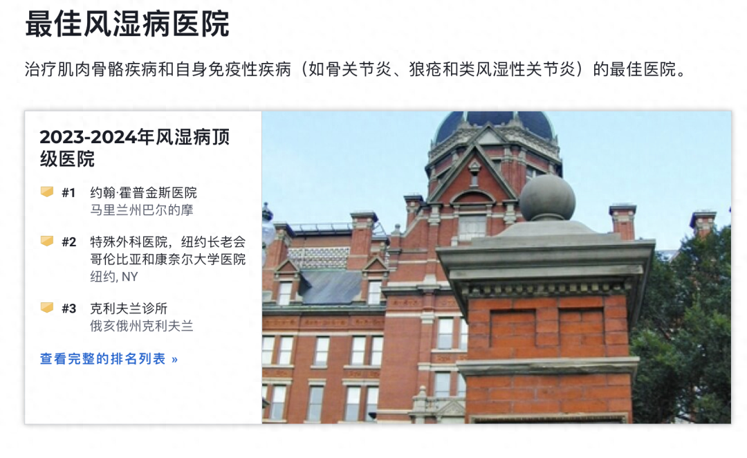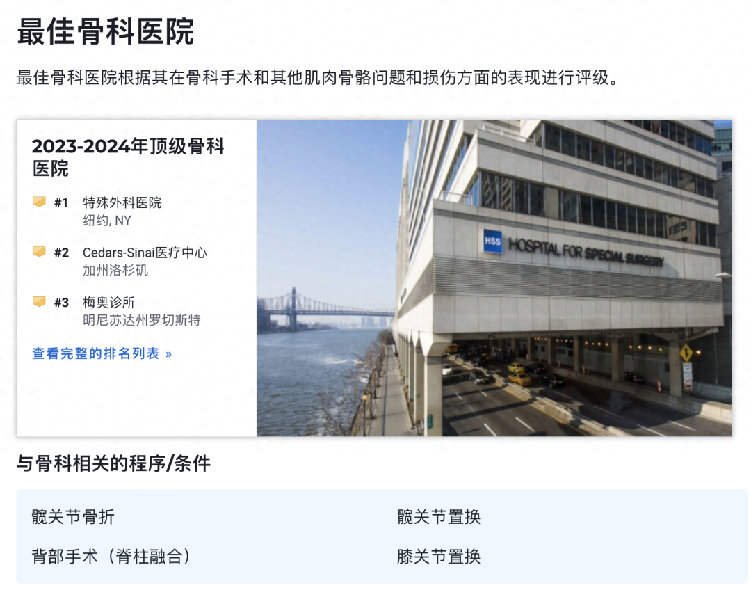 摘要: U.S News公布2023-2024年美国最佳医院及15个专科排行榜前不久