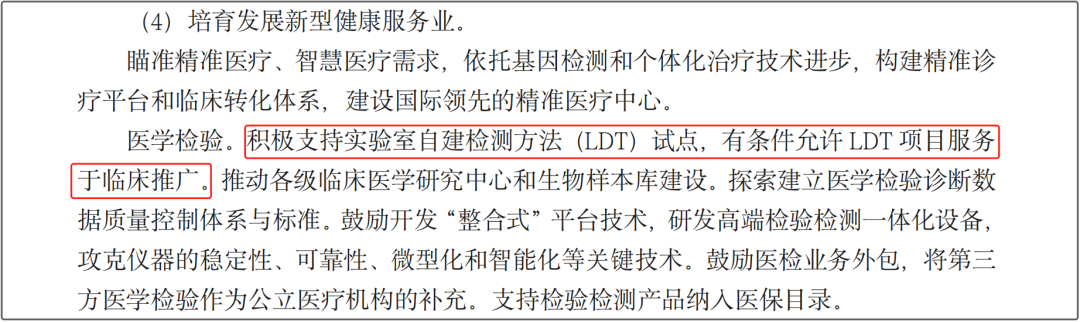 2022420日,广州市发改委印发《广州市加快推进医学检验产业集群发展实施方案》,有明确“支持第三方医学检验机构开展LDT项目”的提法:
