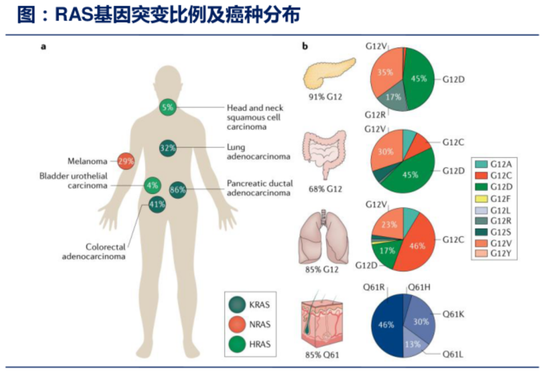当然,这种结论只局限于国内的创新药生态评估,对于欧美等发达国家而言,其支付生态的完善,使得罕见病新药出现爆品的概率也极大。 带着这样的结论和视角,不妨将目光对准肺癌下一个即将决出“国产头名”的靶点KRAS G12C。 为什么“头名”那么重要? 由于EGFR敏感突变率在肺癌领域极高,2021年国内EGFR-TKI市场规模已达154.1亿元;KRAS G12C突变在非小细胞肺癌仅占13%,从国内市场空间测算,当前国内约7万KRAS G12C突变患者的基数与ALK阳性晚期非小细胞肺癌患者数相当,而ALK抑制剂国内市场约50亿元,虽然KRAS G12C用药时间较ALK短,但KRAS G12C的定价更高,推导市场规模与ALK抑制剂相当。 也就是说,KRAS G12C抑制剂大约只有EGFR抑制剂三分之一不到的市场,先发优势异常重要。 KRAS G12C抑制剂竞争已经进入白热化。 目前国内尚未有KRAS G12C抑制剂获批上市,不过临床阶段在研分子超过10家。益方生物和加科思正在争夺国内第一的进度,都希望能够在年底之前或者2024年上半年完成注册性临床提交NDA。 益方生物善于寻找国内的大药企进行合作,第三代EGFR贝福替尼交付贝达药业商业化,而KRAS G12C抑制剂D-1553中国大陆权益是以不高于5.5亿人民币的首付款加里程碑授予正大天晴。 KRAS G12C抑制剂格来雷塞,对于加科思的意义更重大。KRAS与SHP2是一条信号通路的关键节点(Ras/Raf/MEK/ERK通路),同时阻断两个节点能够增强对信号通路的抑制效果,从而对肿瘤治疗产生协同效应,目前,加科思正在推进格来雷塞联用自家SHP-2抑制剂治疗非小细胞肺癌的关键性临床,希望用KRAS G12C抑制剂带动SHP-2的率先上市。 尽管KRAS G12C抑制剂赛道相比EGFR抑制剂小得多,但在50亿左右体量的市场空间下,先发者未来能够占据20-25%的市场份额,也是一个10亿级别的单品。目前益方生物市值为79亿,加科思23.45亿人民币,KRAS G12C抑制剂的商业化预期兑现能够对两家公司的市值进行有力支撑。 事物之间的发展并非独立的,而是有千丝万缕的联系。KRAS G12C抑制剂的疗效、安全性和商业化的验证,也将影响未来有关于KRAS家族药物研发Biotech的发展走向。 KRAS基因家族中,KRAS基因突变在各类癌症中最为常见(家族其他两个成员为HRAS、NRAS)。其中,G12点位突变又占所有KRAS基因突变的83%,G12点位突变主要包括G12C、G12D、G12V。 (图源:华创证券) 显而易见,除了G12C突变外,KRAS基因突变的其他点位仍有很大的开发价值,如果某一家Biotech对该通路有成药验证经验,那么对未来的融资或者出售分子潜力定有助力。 值得一提的是,KRAS G12D突变的药物开发潜力也很大,其不仅是最普遍的KRAS突变类型之一(发生率是G12C突变的2.5倍),且KRAS G12D突变在难治或治疗预后较差的癌症中更常见,如研究显示:胰腺癌患者中约有90%存在KRAS突变(G12D突变是最常见类型、占比高达45%,而G12C突变仅为1%),在KRAS突变的结直肠癌患者中G12D突变也占据了45%的比例。 另外,小分子泛KRAS抑制剂也成为近年来的研发热点,其能有效针对各种KRAS突变(占到各类癌症中全部KRAS突变超过90%),覆盖患者群或是KRAS G12C的10倍以上。 结语:当然,上述对于KRAS的分析和介绍,仅仅只是想说明需要辩证的看待不同靶点市场空间和竞争格局给不同Biotech带来的影响,如果只是针对于分析着眼于国内市场的Biotech,那么投资者就不需浪费时间在适应症小的药物上。 “核心管线大适应症、第一梯队的速度、强商业化实力”,这大概是颇具国内特色的Biotech筛选口诀。 既讽刺,又极具现实主义。 |