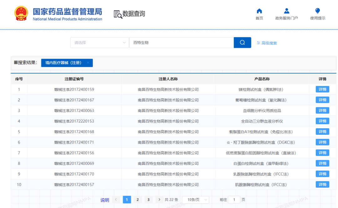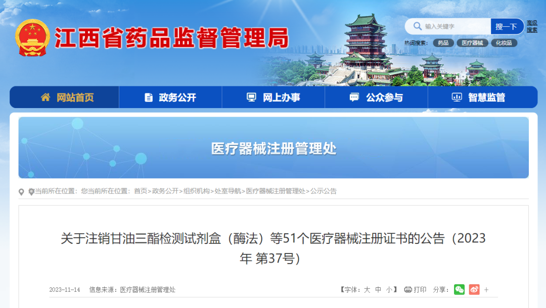 11月14日,江西省药品监督管理局发布一则《关于注销甘油三酯检测试剂盒(酶法)等51个医疗器械注册证书的公告(2023年第37号)》,其中百特生物的44个IVD产品申请注销。 具体内容如下: 按照《医疗器械监督管理条例》规定,根据企业申请,现注销南昌百特生物高新技术股份有限公司44个产品的医疗器械注册证书: 1.甘油三酯检测试剂盒(酶法),注册证号:赣械注准20152400032; 2.尿素检测试剂盒(酶偶联监测法),注册证号:赣械注准20152400046; 3.葡萄糖检测试剂盒(已糖激酶法),注册证号:赣械注准20152400044; 4.高密度脂蛋白胆固醇检测试剂盒(直接法),注册证号:赣械注准20152400045; 5.总胆固醇检测试剂盒(氧化酶法),注册证号:赣械注准20152400042; 6.丙氨酸氨基转移酶检测试剂盒(IFCC法),注册证号:赣械注准20152400041; 7.类风湿因子检测试剂盒(免疫比浊法),注册证号:赣械注准20152400043; 8.α-L-岩藻糖苷酶检测试剂盒(速率法),注册证号:赣械注准20152400047; 9.全量程C反应蛋白检测试剂盒(免疫比浊法),注册证号:赣械注准20152400036; 10.抗链球菌溶血素“O”检测试剂盒(免疫比浊法),注册证号:赣械注准20152400039; 11.β2-微球蛋白检测试剂盒(免疫比浊法),注册证号:赣械注准20152400033; 12.腺苷脱氨酶检测试剂盒(速率法),注册证号:赣械注准20152400035; 13.前白蛋白检测试剂盒(免疫比浊法),注册证号:赣械注准20152400040; 14.钙检测试剂盒(偶氮砷Ⅲ法),注册证号:赣械注准20172400067; 15.天门冬氨酸氨基转移酶检测试剂盒(速率法),注册证号:赣械注准20172400064; 16.总蛋白检测试剂盒(双缩脲法),注册证号:赣械注准20172400072; 17.直接胆红素检测试盒(钒酸氧化法),注册证号:赣械注准20172400070; 18.尿酸检测试剂盒(酶法),注册证号:赣械注准20172400073; 19.肌酐检测试剂盒(苦味酸法),注册证号:赣械注准20172400065; 20.总胆红素检测试剂盒(钒酸氧化法),注册证号:赣械注准20172400066; 21.碱性磷酸酶检测试剂盒(速率法),注册证号:赣械注准20172400071; 22.白蛋白检测试剂盒(溴甲酚绿法),注册证号:赣械注准20172400069; 23.γ-谷氨酰转移酶检测试剂盒(速率法),注册证号:赣械注准20172400068; 24.血细胞分析仪用质控品,注册证号:赣械注准20172400063; 25.同型半胱氨酸检测试剂盒(酶循环法),注册证号:赣械注准20172400116; 26.胱抑素C检测试剂盒(胶乳增强免疫比浊法),注册证号:赣械注准20172400122; 27.肌酐检测试剂盒(酶法),注册证号:赣械注准20172400123; 28.糖化血红蛋白检测试剂盒(胶乳增强免疫比浊法),注册证号:赣械注准20172400114; 29.总胆汁酸检测试剂盒(酶循环法),注册证号:赣械注准20172400160; 30.二氧化碳检测试剂盒(酶法),注册证号:赣械注准20172400155; 31.α-淀粉酶检测试剂盒(EPS速率法),注册证号:赣械注准20172400158; 32.葡萄糖检测试剂盒(氧化酶法),注册证号:赣械注准20172400167; 33.低密度脂蛋白胆固醇检测试剂盒(直接法),注册证号:赣械注准20172400156; 34.胆碱酯酶检测试剂盒(硫代丁酰胆碱法),注册证号:赣械注准20172400164; 35.载脂蛋白B检测试剂盒(免疫比浊法),注册证号:赣械注准20172400161; 36.脂蛋白(a)检测试剂盒(免疫比浊法),注册证号:赣械注准20172400166; 37.α-羟丁酸脱氢酶检测试剂盒(DGKC法),注册证号:赣械注准20172400171; 38.磷检测试剂盒(直接紫外法),注册证号:赣械注准20172400163; 39.肌酸激酶同工酶检测试剂盒(免疫抑制法),注册证号:赣械注准20172400169; 40.肌酸激酶检测试剂盒(IFCC法),注册证号:赣械注准20172400157; 41.乳酸脱氢酶检测试剂盒(IFCC法),注册证号:赣械注准20172400170; 42.镁检测试剂盒(偶氮胂I法),注册证号:赣械注准20172400159; 43.载脂蛋白A1检测试剂盒(免疫比浊法),注册证号:赣械注准20172400168; 44.果糖胺检测试剂盒(NBT还原法),注册证号:赣械注准20172400162。 据国家药监局官网显示,经过本次产品注销之后,百特生物IVD产品线将“全部清空”,这也意味着百特生物或将退出IVD行业。 关于百特生物 南昌百特生物高新技术股份有限公司创建于1993年。经过二十多年的发展,成为集科、工、贸为一体的国家级高新技术企业。 百特自主研发生产的HL系列血液分析仪和试剂,拥有完全自主知识产权的核心技术, 荣获省、市多项科技进步奖, 拥有国家发明专利和实用新型专利40余项,产品遍及全国并且出口至英国、波兰、印度、埃及,越南及尼日利亚等十几个国家和地区,用户近5万家。 来源:江西省药品监督管理局、百特生物、国家药监局、IVD体外诊断网 |