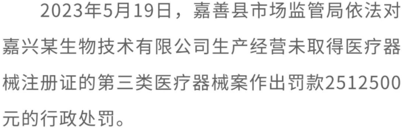 今年以来,浙江省嘉兴市市场监管局积极开展药品安全巩固提升行动暨打假治劣“药剑”行动,加强药品安全领域违法犯罪行为的打击力度,查处了一批大案要案和典型案例。 其中点名,嘉兴某生物技术有限公司生产经营未取得医疗器械注册证的唾液新型冠状病毒抗原检测试剂盒(纳米碳法),嘉善县市场监管局依法对其作出行政处罚,罚款2512500元。 2023年2月7日,嘉善县市场监管局根据举报依法对当事人进行现场检查,发现当事人生产的唾液新型冠状病毒抗原检测试剂盒(纳米碳法)属于第三类医疗器械,且只能用于出口。 经查,2022年12月20日,当事人在上述抗原检测试剂盒(纳米碳法)未取得医疗器械注册证的情况下,与国内某医学科技(深圳)有限公司签订销售合同,向其销售由当事人生产的唾液新型冠状病毒抗原检测试剂盒(纳米碳法)5万人份,单价为3.35元每份,总金额167500元。 当事人的上述行为违反了《医疗器械监督管理条例》第十三条第一款的规定,嘉善县市场监管局依法对其作出行政处罚,罚款2512500元。 |