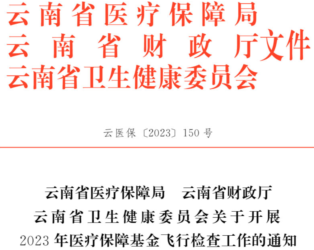 近日,云南医保局官网发布《云南省医疗保障局云南省财政厅云南省卫生健康委员会关于开展2023年医疗保障基金飞行检查工作的通知》,并公布了《云南省2023年医疗保障基金飞行检查实施方案》(简称《方案》)。