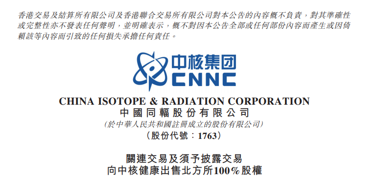 11月23日,中国同辐股份有限公司发布公告,有关公司拟通过北交所挂牌转让向中核健康出售其持有的北方所(北京北方生物技术研究所有限公司)的100%股权的相关事宜。 中国同辐(作为转让方)与中核健康(作为受让方)订立产权交易合同,公司同意出售而中核健康同意收购公司持有的北方所100%股权,代价为人民币2.6亿元。于出售事项完成后,中国同辐将不再持有北方所任何股权,北方所不再作为附属公司计入集团合并财务报表。 公告称,北方所是公司体外诊断业务板块的全资子公司,深耕放射免疫领域近40年,受内外部环境影响,面临巨大的发展机遇和挑战。公司拟为北方所引进战略投资人,通过导入互补优势资源,盘活北方所存量资产,提供产业协同和赋能,未来借助资本手段注入发展活力、谋求北方所更好的转型发展,提升企业形象。出售事项有利于集团且不会对集团的业务与财务表现造成负面影响。 北方所财务情况: 按照中国企业会计准则,北方所於截至2023年9月30日止九个月、2022年12月31日止年度及截至2021年12月31日止年度的净利润(按合并报表口径,扣除税收之前和之後)如下: