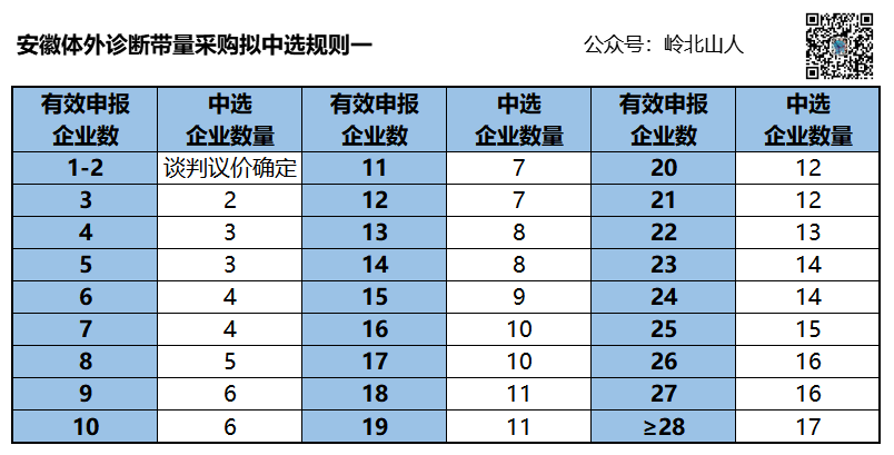 拟中选一规则适用于A/B/C各个组,根据每个组的有效申报企业数量,来确定中选数量。