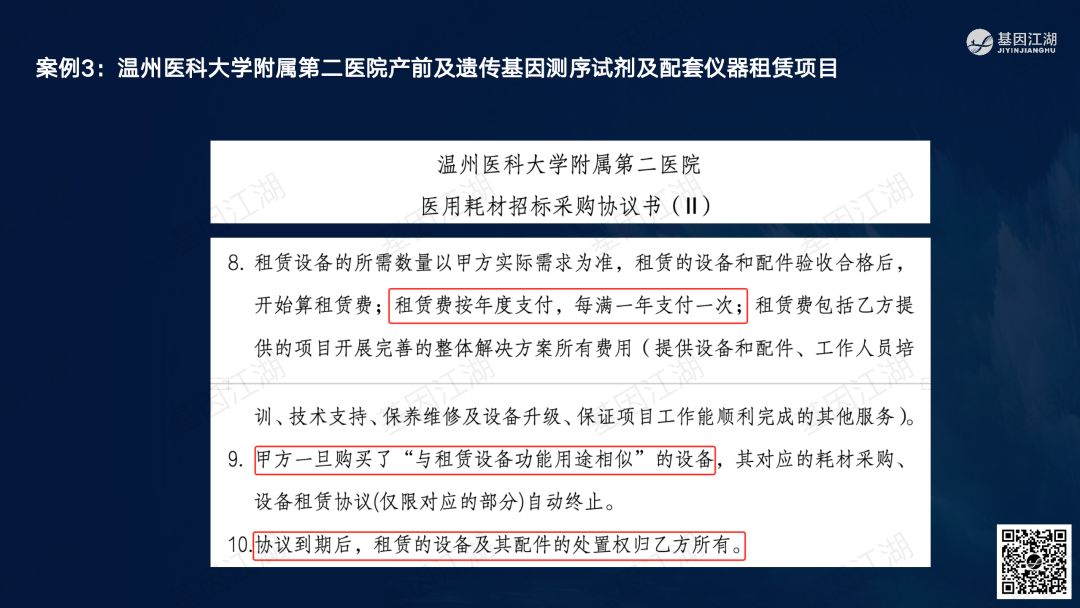 设备融资租赁并非新鲜事,但一直未成为市场主流模式。之前政策明令禁止医疗机构举债大规模扩建、购置大型医疗设备。此次广州“设备租赁”试点文件,有“应租尽租”倾向,并在2024年全省推广,政策支持信号明显。文件实施的潜在背景为,当前各级政府财政压力巨大,医院在各种政策的约束下收入下降、负债高企,企业订单缺乏,整个市场缺乏活力;此次文件,借政策力量撬动社会资本,平滑财政支出压力,同时促进产业循环,利好行业。 本次试点包含“教育”、“科技”、“医疗”三大领域,本篇重点关注医疗领域。但对于基因测序厂家而言,“教育-高校、科技-科研院所、医疗-医院”均为潜在客户。这些“有实力的租赁企业”是否会成为未来竞争的关键要素?政策有“严禁借租赁之名,捆绑设备耗材销售”条款;实际操作中,也有“名为租赁、实为投放”之举;这些“不正当竞争”的风险,需要规避;除此以外,医院的能级和患者数量决定了医院的偿债能力,注意债务风险。