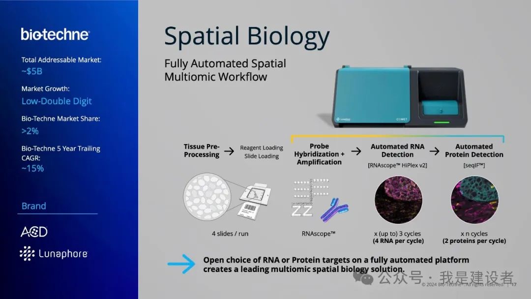 都说水大鱼大,容得下同饮一江水。为什么10x Genomics要对几家竞争者发起专利战,一副势不两立的样子。 如果一个市场足够大,应该容得下不同的玩家;似乎只有市场不太大,才会冰炭不同炉,起意敌对。 很好奇,空间生物学的市场到底有多大? 首先,什么是空间生物学? 空间生物学可以定义为在空间背景下对组织中的目标分析物进行的分析(即标记物在组织和/或其他位置的表达),并且主要由多重生物标志物的分析所驱动的生物学和病理生理学研究。当下,大多数空间分析都是蛋白质组学或转录组学或两者结合的多组学,空间基因组学(例如3D基因组)也存在,但不太常见。这些旨在原位分析多重生物标志物的技术,包括mIF、mIHC、数字空间分析、多重 FISH 和成像质量的流式细胞术等等。 再回到各家对于这一市场的预估和测算上。 10x三位一体的产品,定位在单细胞和空间组两个领域。两个领域代表了两个更深的维度,10x视传统的分子生物学、免疫荧光、细胞成像等技术工具可解决的市场均为潜在市场(TAM)。在研究和转化这个应用领域,10x认为存在160亿美元的TAM,其中转化的这个市场为70亿美元。10x称,每年大约160亿美元的机会是基于对研究人员资金和潜在制药样本可用性的估计。(这无异于在说,这个数字是夸大的带有水分的?) Nanostring则引用了LEK咨询公司2020年的一个报告(找不到具体出处),称GeoMx & CosMx所处的空间生物学研究的TAM为60亿美元(TAM约等于14,000套仪器=7000台GeoMx + 7000台CosMx),这其中包括了发现和转化。而基于空间的诊断市场可能超过60亿美元,所以整体空间生物学市场预期为120亿美元。 另一大玩家Bio-Techne的报告中简单提及空间生物学的TAM为50亿美元左右。 另一个数字则来自于Akoya,其在报告中称预期的TAM为140亿,包括了临床诊断的70亿美元市场。然后又引用DeciBio的报告(第一版,Q4 2022)称只有TAM的10%能在2027年之前实现。DeciBio的报告里写到,以每年30%的增长,到2027年空间生物学的市场为12亿美元,其中一半以上为转化及临床研究。 DeciBio将与购买用于运行检测的空间生物学平台或试剂/套件相关的仪器和试剂收入,以及与空间载片或图像分析的湿实验室处理相关的服务收入(例如,由CRO/参考实验室),及向学术界、生物技术/制药公司和 CRO 客户(包括治疗公司和诊断/分析工具公司)销售产品和服务的收入包含在了报告内,但不包括数字病理学/图像分析,与 CDx开发服务收入,及其他无需空间分析的组织学测试等项目。 DeciBio也在最近升级了这个报告的第二版,空间生物学市场预计在 2024 年将达到约 8.6 亿美元,并预计在未来 5 年内每年增长 21%,到 2029 年将达到约22.7亿美元。 从这些差异巨大的市场容量测算来看,空间生物学领域还很年轻,这些预测存在很大的不确定性,任何可能出现的关键发展都能决定该技术的未来采用及速度。 举例来看,10x称原位空间分析平台Xenium仅发布一年就累计售出250多台,实现了快速的采用和开机运行。这什么概念?作为对比,CosMx作为Xenium的对头产品,是NanoString三个平台中采用最快的,发布5个季度累计订单180台。 迄今为止,学术界一直是空间生物学分析的最大客户群体,然而,随着初步研究产生有希望的结果以及技术和分析管道变得更容易获得和验证,空间生物学在生物制药转化研究和临床试验中的使用正在增加。可扩展性、标准化和临床实用性的持续进步预计将推动研发各个阶段的增长。 过去三年,10x的空间产品(包括Visium和Xenium)实现了快速增长,截止去年底,其空间产品的仪器累计销售786台,仪器及耗材总营收约为1.35亿美元。与之相类似,NanoString的空间产品(包括GeoMx和CosMx)也保持了积极的增长,截止2023年第3季度(此后身陷禁令泥潭,至今未提交第四季度及年报),实现安装510套,在此之前的12个月实现了总营收8400万美元。从运营及财务结果来看,两者真是势均力敌。 不管是按照8.6亿美元还是各自估算的超100亿的市场规模,10x在空间生物学的市场渗透率都还远不及20%。DeciBio的报告称该市场已适度整合,包括 10x、NanoString、Akoya Biosciences 和 Bio-Techne 在内的头部供应商占据了约 60% 的市场份额。然而,其他几个中小型企业(例如Standard BioTools、徕卡显微系统公司、Ultivue 和 Vizgen等)随着市场的增长和进一步发展,已准备好抢占市场份额。 这可能部分解释了为什么10x对几个竞争对手挑起了专利纠纷。 未来的空间组学市场可能有很大,但眼前的这个市场可能真得拼命才能胜出。而专利正是一把威力无穷且精准致命的武器。 |