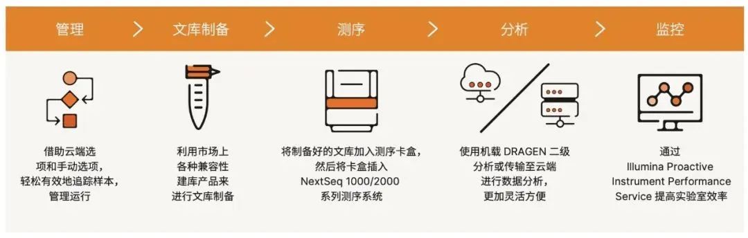 NextSeq将桌面测序系统的特点展现得淋漓尽致。小巧,液路部件被压缩;一个内置液路系统的集成式卡盒结合一个流动槽,加载即用;灵活,只需更换不同的卡盒和流动槽就可在不同的应用间切换;机载计算资源,简化分析。可以想象,刚接触Illumina测序系统的人会很高兴开始体验NextSeq 2000。而一旦上手,任何规模的实验室都可以更频繁地运行测序实验。