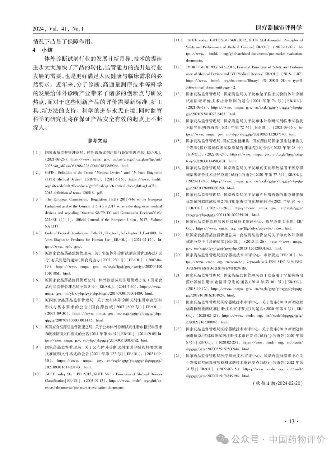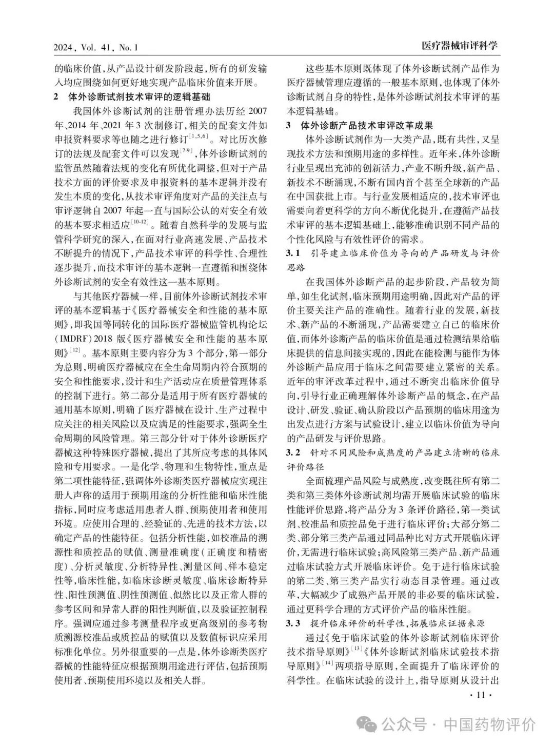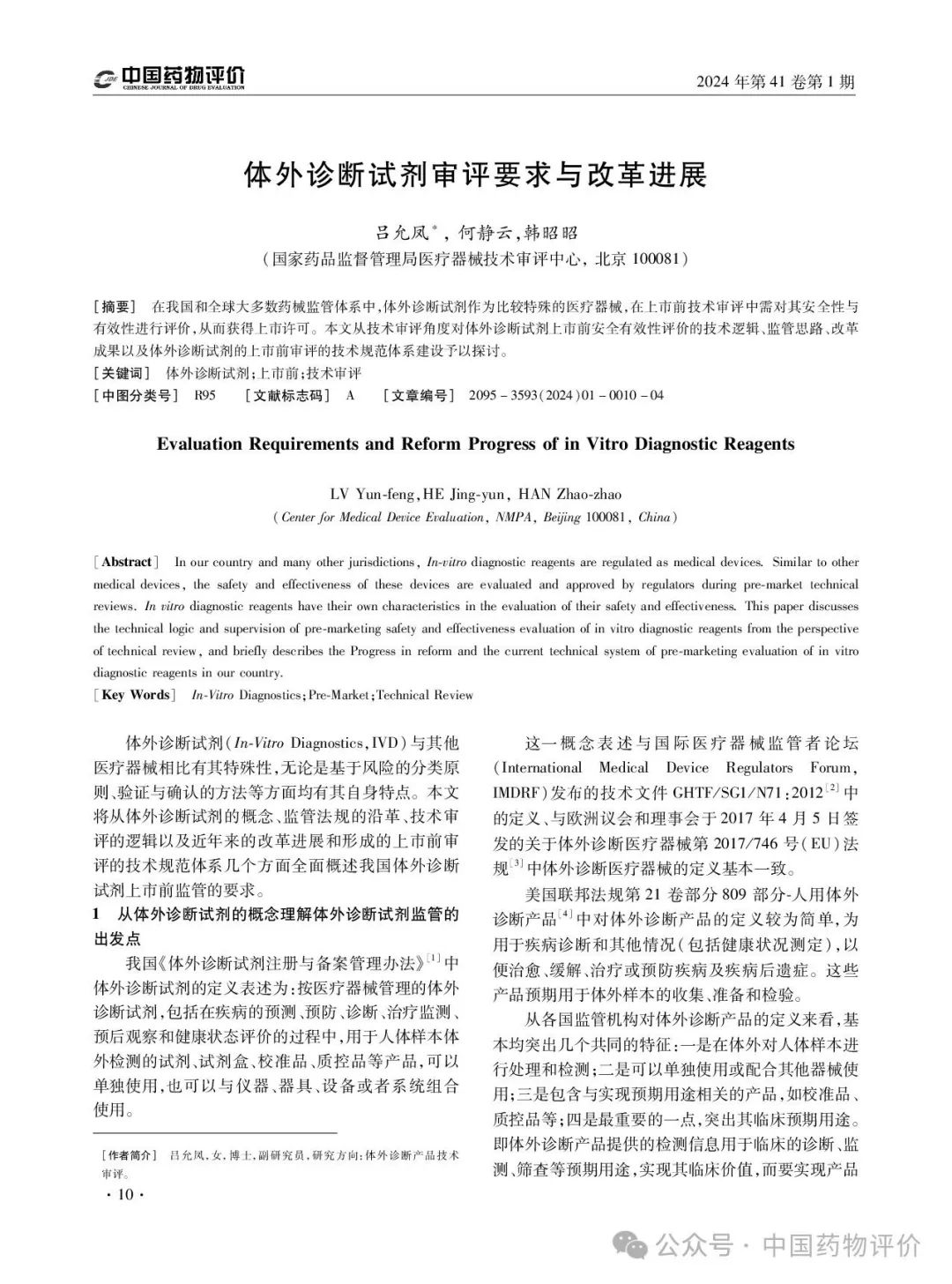 【本文引用】吕允凤, 何静云,韩昭昭.  体外诊断试剂审评要求与改革进展[J]. 中国药物评价, 2024, 41(1): 10-13.