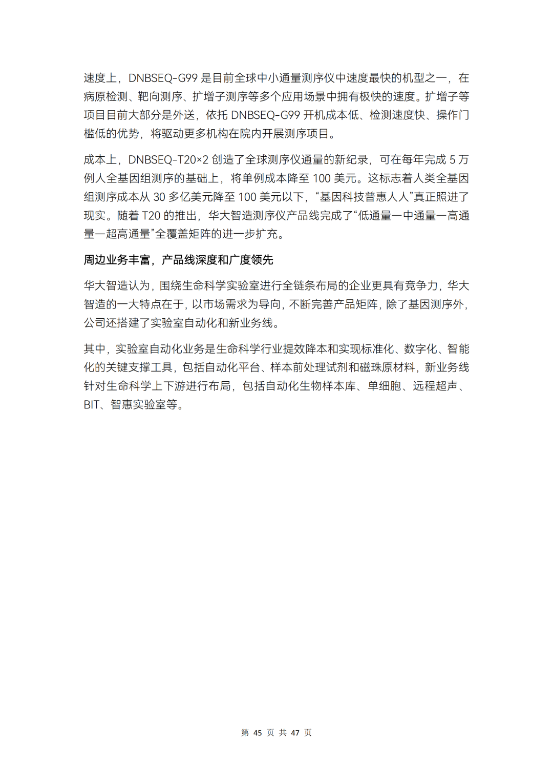 国产测序仪的崛起已经成为令人瞩目的焦点。 根据蛋壳研究院统计,截至 2023 年 12 月 31 日,除开 Sanger 测序仪,目前中国有近 20 家企业披露了其自主研发的测序仪,其中近 30 款已经宣布商业化,8款获得了 NMPA 批准。高通量测序仪,以及新兴的单分子测序仪都有中国企业在深耕。 然而实现大规模商业化落地对于国产测序仪来说仍是一大挑战,这需要企业持续提高产品稳定性和可靠性,切中目标市场真实需求,合理拓展应用领域。《2023年国产测序仪行业研究报告》旨在探寻国产测序仪爆发背后的驱动因素,分析如何加速实现国产测序仪商业化落地。基于此,蛋壳研究院调研了 8 家测序仪企业、3 家基因测序服务商,访谈了 11 位行业专家,撰写了此报告。 核心观点: 资本寒冬影响不明显。中国基因测序仪行业累计有 13 家企业完成了 54 笔融资,融资总金额 132.34 亿人民币,融资表现远胜于精准检测和生命科学仪器众多细分赛道。特别是,IVD 和测序服务板块竞争日益激烈,测序仪的战略地位越发突出,圣湘生物、安图生物、金域医学等多家产业资本出手投资测序仪企业。 高通量测序仪应用生态成熟,国产品牌在高通量测序仪板块的话语权在迅速加强。 目前,一共有 10 家企业的 19 款高通量测序仪宣布商业化。多数新势力企业从中低通量切入,头部企业已经完整覆盖高中低不同通量范围。在未来一段时间内,高通量测序仪将继续占据主要市场地位。 纳米孔测序仪或许是新势力企业弯道超车的机会。根据统计,国内自主研发国产纳米孔测序仪的企业有 9 家,其中有 3 家企业的 6 款纳米孔测序仪已经商业化。 对于纳米孔测序仪的准确性和成本优化问题,国内企业从芯片、生化性能、模型算法等角度着手,已经有好的解决方案。 |