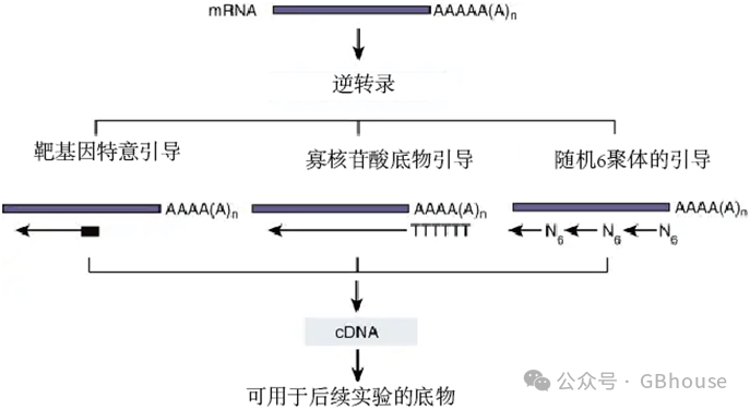 1 聚合酶链式反应反应(PCR) 聚合酶链式反应(Polymerase Chain Reaction,已成为生物科学、诊断学和法医学最有价值的生物技术之一。聚合酶链式反应(polymerase chain reaction, PCR)可以将非常少量的 DNA 转化为非常大量的 DNA,是许多分子生物学专业技术基础[1]。尤其在水生热菌(Thermus aquaticus)中引入热稳定的DNA聚合酶,该技术的自动化和改进取得了进展,因此得名Taq DNA聚合酶 [2]。PCR技术在生物领域广泛使用,无论是化石中的古生物、历史人物的残骸,还是几十年前凶杀案中凶手所遗留的毛发、皮肤或血液,只要能分离出一丁点的DNA,就能用PCR加以放大,进行比对[3]。 普通PCR即第一代PCR技术,以双链DNA为模板,以dNTP为底物,特异性地扩增双链DNA,然后采用琼脂糖凝胶电泳对产物进行定性分析。 在PCR的循环中一般经历“变性→退火→延伸”的流程之后,靶基因(双链DNA)数量由n变成了2n;2次之后是4n条;以此类推,经过变性、退火和延伸重复若干个循环后,实现靶基因扩增放大几百万倍。扩增完成之后对扩增出来的DNA进行检测,例如凝胶电泳手段(鉴定大小),测序(鉴定靶基因序列)。 2 Real-Time PCR 实时聚合酶链式反应(Real time-polymerase chain reaction,RT-PCR)核酸扩增和检测技术是当今生物学研究中最有价值的工具之一。生命科学各个领域的科学家——基础研究、生物技术、医学、法医学、诊断学等等——在广泛的应用中利用这些方法。实时PCR(RT-PCR)是一种使用荧光染料或探针(实验室通常称为引物)技术对样品中存在的核酸进行定量的技术或实现靶基因/序列的扩增。RT-PCR足以扩增目标是模板DNA (cDNA是其中一种),也就是说,它可以在PCR仪器(热循环仪器)复制DNA。它使我们能够研究目标序列或基因,因此一直是遗传学中的一项关键技术。 (图3 RT-PCR热循环扩增目的片段步骤简易示意图) 3 Reverse transcription-polymerase chain reaction 逆转录聚合酶链反应(Reverse transcription-polymerase chain reaction,RT-PCR),一般用于mRNA合成双链的cDNA用于后期的靶基因扩增。逆转录酶PCR (RT-PCR)是扩增靶RNA的聚合酶链反应的一种变体,在PCR之前添加逆转录酶(RT)酶使扩增和检测RNA靶标成为可能。逆转录酶转录模板RNA并形成互补DNA (cDNA)。单链cDNA通过DNA聚合酶转化为双链DNA。这些DNA分子现在可以用作聚合酶链反应的模板。 DNA是单链还是双链得根据实际情况,例如RT-PCR, 3'或5' RACE,我们只使用单链cDNA(第一链cDNA),其它情况如构建表达载体,qRT-PCR等是双链。一般情况下,cDNA它是在体外经过逆转录后与RNA互补的DNA链(可以参见转录试剂盒的说明书),但是与基因组的DNA复杂序列不一样,因为cNDA来自于mRNA,因此cDNA只有外显子,因为mRNA是通过DNA转录而来,内含子序列或者绝大部分内含子序列已经被丢弃(这原理就是mRNA的剪切作用)。 (图4 逆转录PCR(RT-PCR)合成cDNA示意图) 4 qRT-PCR 定量逆转录聚合酶链反应(Quantitative reverse transcription polymerase chain reaction),也称为qRT-PCR,用于检测和定量RNA。在qPCR中,扩增产物的数量在每个PCR反应周期使用荧光值被测量。利用的底物或者模板是cDNA(complementary DNA, cDNA),而cDNA是Total RNA(总RNA)或mRNA首先转录合成。然后将cDNA用作qPCR或实时PCR反应(qPCR)的模板,RT-qPCR用于多种应用,包括基因表达分析、RNAi验证、微阵列验证、病原体检测、基因检测和疾病研究等,是非常常见和通用的一种生物科学实验技术。 实时定量反转录PCR (Real-Time Quantitative Reverse Transcription PCR)是PCR技术的一项重大发展,它能够对PCR过程中每个周期产生的产物进行可靠的检测和定量检测。在引入寡核苷酸探针(qPCR引物)后,使得这种技术成为可能,寡核苷酸探针被设计用于在目标序列内杂交。由于Taq聚合酶的5'核酸酶活性,在PCR过程中探针的切割可以用来检测目标特异性产物的扩增。 对于qRT-PCR称呼有不同的形式,但总体上来说,实时定量反转录聚合酶链式反应(Real-Time Quantitative Reverse Transcription PCR)可能精细一些,毕竟qPCR仪器在采集数据的时候就是一种实时荧光数据收集,当然并不否认定量逆转录聚合酶链反应的称呼是错误的。 (图5 qRT-PCR检测基本原理图) 5 PCR、qPCR、RT-PCR和qRT-PCR小结 PCR、qPCR、RT-PCR和qRT-PCR四种技术都是基于聚合酶链式反应(polymerase chain reaction,PCR)的技术,主要区别在于它们的应用领域和检测目标不同。PCR作为第一代技术主要用于体外靶基因(DNA序列)扩增和检测;qPCR可以实时定量检测DNA或cDNA的含量;RT-PCR基于mRNA合成的cDNA,实时监测并扩增获得靶基因(DNA序列)用于后续实验,属于PCR二代技术范畴;而qRT-PCR技术是RT-PCR和qPCR的技术结合体,实现mRNA的定量分析。