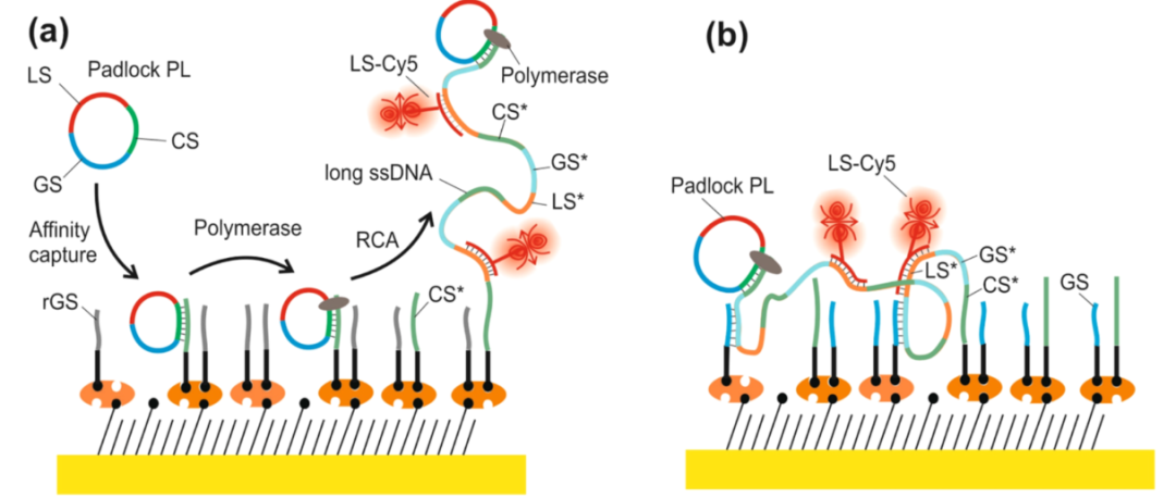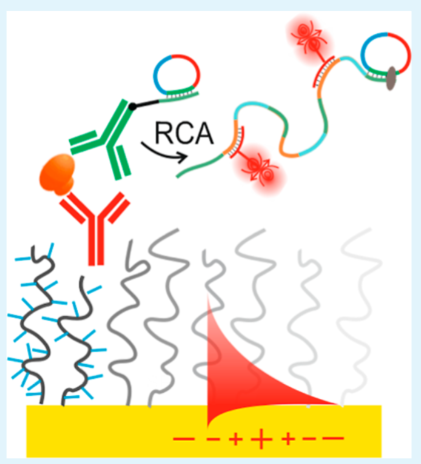 在固体表面部署DNA扩增反应具有通过高效复用等方式扩大DNA分析技术性能的潜力。此外,表面DNA扩增反应可能为适用于检测不同分析物的其他类型传感器模式和分析扩增策略打开了大门,包括无法直接扩增而通常只能通过免疫测定法检测的蛋白质。RCA能够产生密集的单链脱氧核糖核酸(ssDNA)链,形成聚电解质刷层。