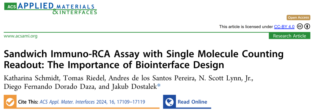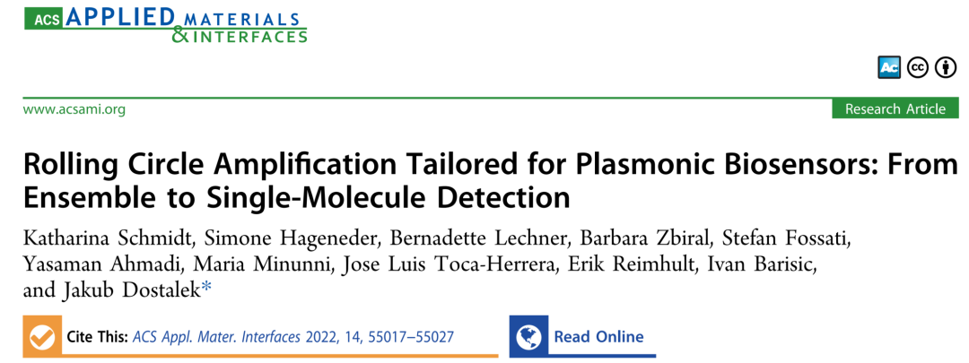 Jakub Dostalek生物传感器研究专家,从2021至2024年,发表在国际著名材料学期刊《ACS Appl Mater Interfaces》上的3篇文章,为我们讲述了一件事,基于RCA扩增原理的信号放大技术如何应用于单分子检测。