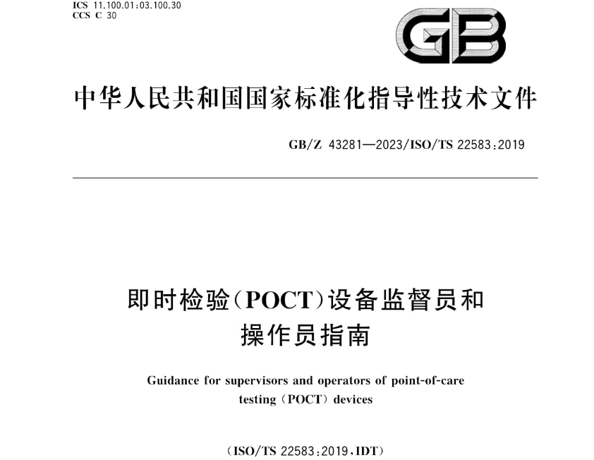 该标准由国家市场监督管理总局、国家标准化管理委员会发布,该标准的制定为没有医学实验室培训、监督或支持的情况下进行POCT服务提供了指导,确保 POCT 结果的准确性和可靠性。