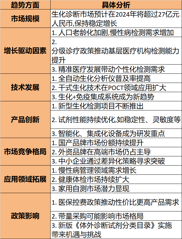 4. 生化与其他检测技术的融合(如生化+免疫)将成为重要发展方向。