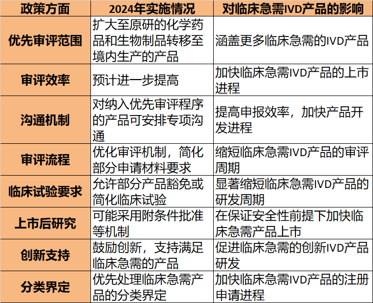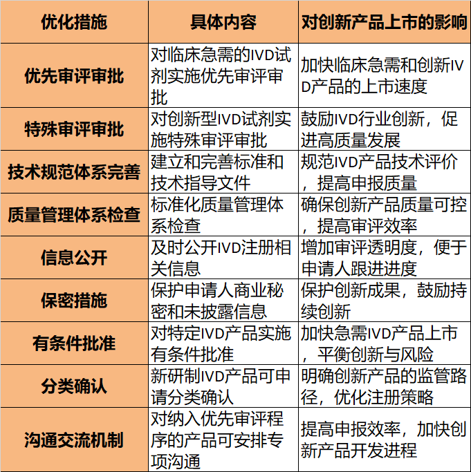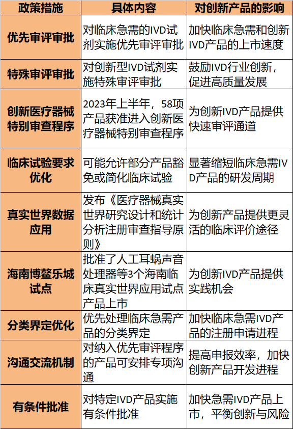 1. 这些政策措施旨在加速创新IVD产品的开发和上市,特别是满足临床急需的产品。