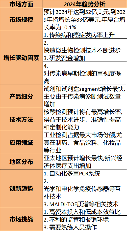 3. 自动化和多重检测技术将是未来发展重点,有助于提高检测效率。