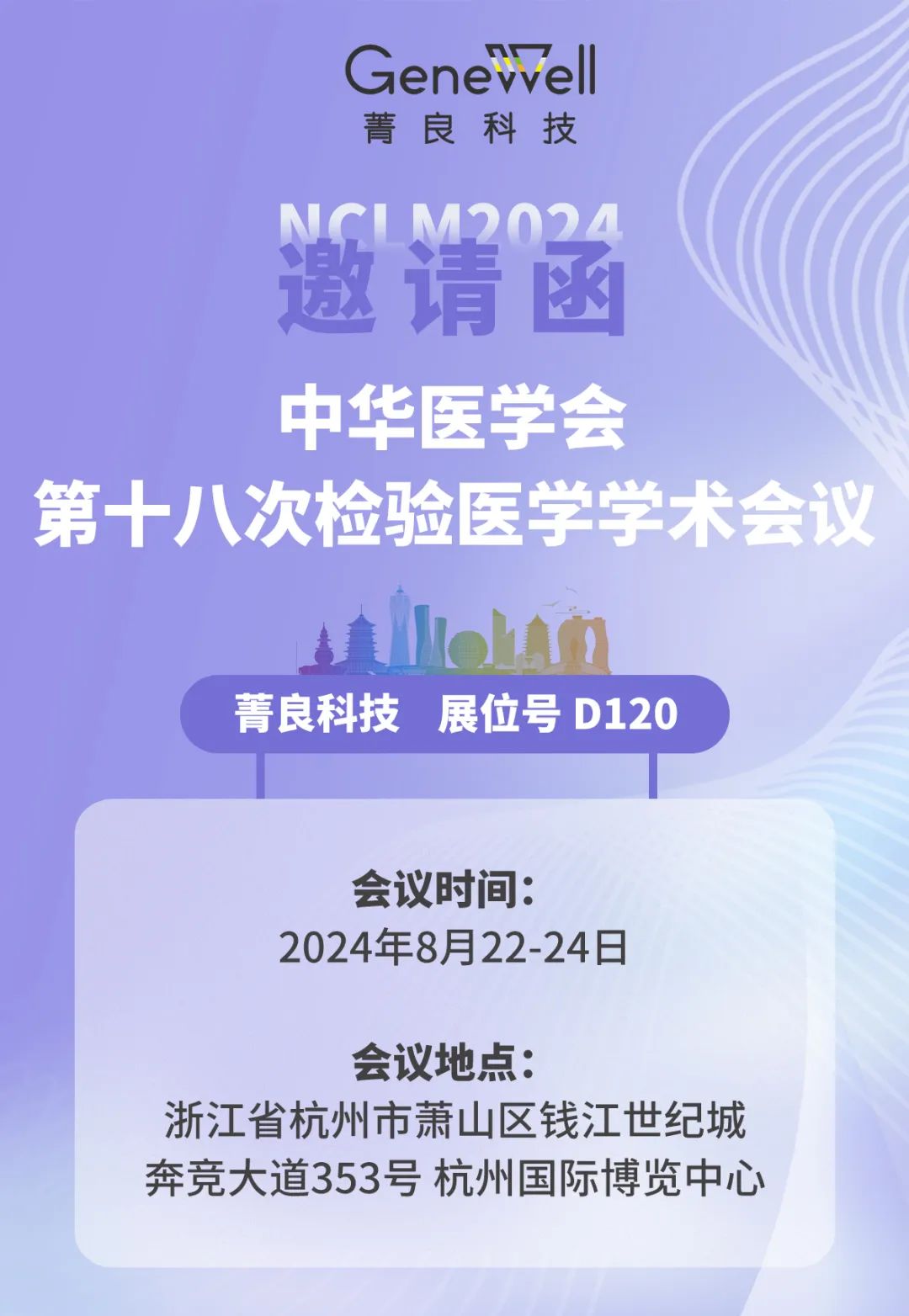 菁良科技 杭州国际博览中心 展位号:1D展厅 · D120 中华医学会第十八次检验医学学术会议(2024检验医学大会)将于2024年8月22-24日在浙江省杭州市杭州国际博览中心召开。会议由中华医学会、中华医学会检验医学分会主办、浙江省医学会承办。本次会议将涵盖临床检验和实验室管理各领域最新的研究成果和发展趋势,并将对检验医学所面临的新形势和新挑战进行广泛充分的交流探讨。届时将邀请国内一流专家与会做专题报告。 菁良通过自主研发和国产化生产,向体外检测行业用户及合作伙伴提供全球领先的临床实验室质量控制解决方案,协助医学实验室实现全面质量管理。欢迎大家前来咨询交流,共同探讨最新技术发展和难点。 菁良临床质控一站式解决方案 菁良分子质控覆盖多种疾病类型 展位预告 关于菁良 菁良科技(深圳)有限公司是全球领先的提供体外检测标准品的研发创新型高科技企业。 体外检测需要标准品!随着经济的快速发展,科技细分领域的不断拓展,国民生活水平的不断提高,检验检测市场需求也随之快速上升,体外检测进入高速发展阶段。然而配套的质量控制和规范化意识却相对滞后,很大一部分体外检测方法仍然存在效率低下且检测准确率有限的情况。菁良通过自主研发的高科技平台,向体外检测行业用户及合作伙伴提供全球领先的标准物质、第三方质控产品和研发参考品服务,助力提高行业检测准确率! 菁良自2018年成立以来,始终以推动行业规范化、标准化为己任,参与多项由检测领域行业龙头发起的标准制定工作,多次支持由临检中心发起的室间质量评价 (EQA)/能力验证项目。菁良拥有全球领先的标准品研发技术和资深的国际拓展经验,已推出众多行业首创的参考品和第三方质控品,被广泛用于检测试剂和仪器的工艺开发、以及检测过程之中。菁良秉承着“精准制标,匠心良造”的理念,怀抱着“提高体外检测准确率,助力精准医学快速发展”的愿景,致力于建立规范化的中国体外检测金标准平台。
