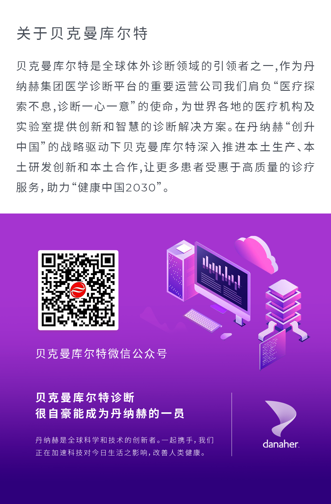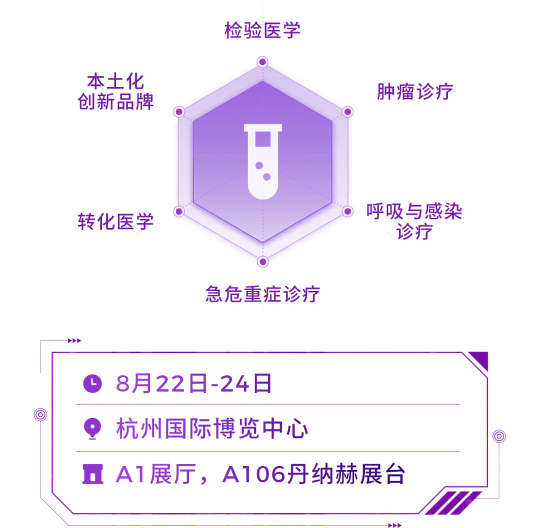 8月22日至24日,由中华医学会、中华医学会检验医学分会举办的中华医学会第十八次全国检验医学学术会议(2024NCLM)将于杭州举行。 此次大会上,丹纳赫诊断平台旗下贝克曼库尔特、雷度米特、赛沛、徕卡、麦默通5家运营公司,首次以丹纳赫品牌形象参展,在检验医学、肿瘤诊疗、呼吸与感染诊疗、急危重症诊疗、转化医学和本土化创新品牌六大区域大“展”身手,带来多款创新产品和解决方案。 在“创升中国”战略背景下,贝克曼库尔特基于中国患者特点和临床诊疗需求,在丹纳赫诊断平台中国研发制造基地进行研发并上市的免疫诊断产品——NT-proBNP,并将于展台举行新品发布仪式,我们诚邀您前来共同见证。 展会期间,我们将带来全新的元宇宙智慧实验室体验中心。通过虚拟现实技术,观众将踏上一场沉浸式的实验室之旅,探索物联互动与虚拟仿真的魅力,提前体验未来检验场景的无限可能。 贝克曼库尔特期待与您相聚“浙”里,共同启“杭”,探索检验医学新高峰。 |