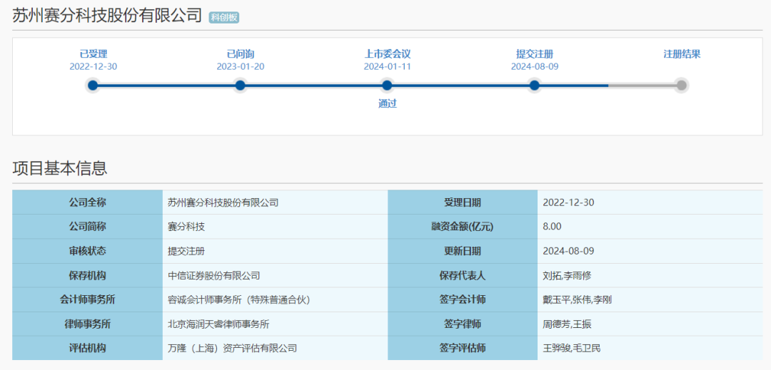 整理自证监会、赛分科技、医药投资部落 证监会官网8月23日显示,苏州赛分科技股份有限公司IPO注册正式生效,即将敲钟上市。 赛分科技于2022年12月30日申请科创板IPO,2024年1月11日过会,2024年8月9日提交注册,2024年8月23日获得证监会注册批文。其是上交所今年首家审核企业,也是年内科创板IPO首家过会企业。过去2年,有无数家企业成功过会但都被终止注册,赛分科技的同意注册太不容易了。 赛分科技有限公司(Sepax Technologies, Inc.)于2002年在美国特拉华州成立,致力于开发和生产用于生物大分子等药物分离纯化的液相色谱材料。历经二十年在色谱层析领域的深耕,赛分科技已发展成为一个集研发、生产和全球销售为一体的实业型企业,全球客户超5000家。公司主要产品为色谱层析介质、液相色谱柱,为全球生物制药企业提供从药品研发、临床前(Pre-IND)到临床Ⅰ、Ⅱ、Ⅲ期、生产以及质控全周期全流程分析色谱和工业纯化解决方案。 苏州赛分科技成立于2009年3月16日,主要从事药物分析检测和分离纯化的液相色谱材料研发和生产。 公司核心产品为应用于生物大分子药物及小分子化学药物分析检测和分离纯化的色谱柱和层析介质,贯穿药物开发生产的全过程,应用于药物研发、IND申报、临床试验、申请上市、商业化生产等多个环节。 简单说来,赛分科技主要是生产高分辨率及高效的生物分离和提纯产品,而这其中最大的一块市场便是生物药的分离和提纯。 据前瞻产业研究院数据,2021年中国色谱柱产量达到17.2万根,占全球色谱柱产量比例为4.2%。赛分科技2021年分析色谱柱产量大约在1.72万根左右,占到国内产量的约10%。 赛分科技的客户群体非常广泛,其在全球分析色谱领域客户超过5000家,与包括罗氏、辉瑞、礼来、甘李药业、正大天晴、齐鲁制药、再生元、Moderna等国际大型医药集团、生物制药公司以及创新药企业建立了业务合作关系,并与Agilent、Sigma-Aldrich等行业国际巨头保持长期稳定合作。 但是从收入和利润的规模来说,赛分科技的体量并不大,从2021年到2023年上半年,其收入分别为1.55亿、2.13亿和1.34亿,净利润分别为0.22亿、0.48亿和0.35亿。 招股书显示,从2021年至2022年,赛分科技的生物大分子层析介质的产能利用率分别为89.83%、25.43%和35%,波动幅度较大。硅胶基质填料的产能利用率也并不稳定,分别为71.96%、99.25%和63.66%。 相比之下,分析色谱柱产能利用率虽未饱和,但相对稳定,报告期内分别为95.63%、89.66%、80.24%、79.14%,基本在80%以上。 据赛分科技招股书显示,此次在科创板上市,赛分科技计划募资8亿元。其中,3.34亿元用于20万升/年生物医药分离纯化用辅料,1.95亿元用于研发中心建设项目,2.7亿元用于补充流动资金。 |