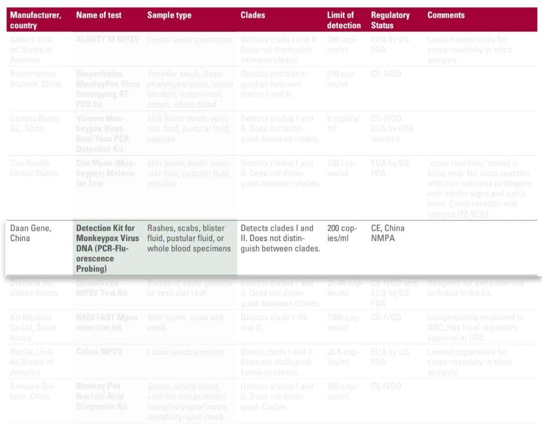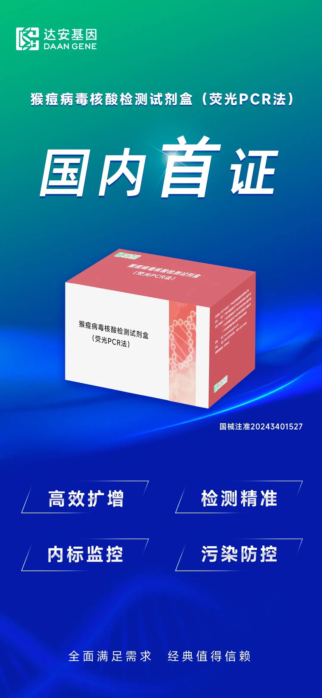为了应对非洲猴痘疫情的挑战,非洲疾控中心诊断咨询委员会(DAC)于2024年8月19日至23日在基加利举行会议,审查并筛选出首批推荐的猴痘分子诊断试剂名单。这份推荐名单旨在为非洲疾控中心、各国和合作伙伴采购高质量的分子检测试剂提供指导,以应对猴痘疫情。 经过评估和审查,达安基因的“猴痘病毒核酸检测试剂盒(荧光PCR法)”入选首批推荐名单。 达安基因的“猴痘病毒核酸检测试剂盒(荧光PCR法)”于2022年5月获得欧盟CE认证,并于2024年8月18日通过中国国家药品监督管理局审批,成为国内首个获批上市的猴痘病毒检测产品。 达安基因的“猴痘病毒核酸检测试剂盒(荧光PCR法)”灵敏度高、特异性好,可适配常规荧光PCR仪和AGS8830快速荧光PCR仪,产品注册过程中的“包容性研究”显示:达安基因的猴痘病毒核酸检测试剂可稳定检出猴痘病毒的“分支Ⅰ”和“分支Ⅱ”两个进化分支。 根据非洲疾控中心发布的数据,自2024年1月以来,截至2024年8月25日,累计有13个非盟成员国报告了18238例疑似病例(3381例确诊,590例死亡)。 2024年8月22日,泰国公共卫生部召开新闻发布会确认,该国出现首例猴痘“分支Ib”毒株病例,这也是世界卫生组织再次为猴痘疫情拉响全球公共卫生警报后,亚洲首例“分支Ib”毒株病例。 为了加强猴痘疫情的防控,国家疾控局、国家卫健委已于2023年7月26日发布《猴痘防控方案》,要求医疗机构、重点人群、入境人员和重点场所等开展猴痘疫情监测。 针对入境人员,海关总署发布的公告要求:来自猴痘疫情发生国家(地区)的人员,如接触过猴痘病例或出现发热、头痛、背痛、肌痛、淋巴结肿大、皮疹和黏膜疹等症状,入境时应主动向海关申报,海关人员将按规定程序采取医学措施并开展采样检测。 达安基因在历次新发和突发传染病防控中均发挥了重要作用,例如:2003年“非典”、2008年手足口病、2009年甲流H1N1、2013年H7N9禽流感病毒、2014年埃博拉病毒、登革病毒、2017年MERS-CoV、寨卡病毒、2020年全球暴发的新冠病毒以及2022年猴痘病毒,达安基因均在国内率先研制出检测试剂盒,为疫情防控注入了达安力量! |