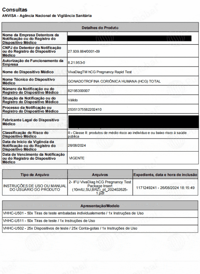 0巴西:妊娠快测工具, II类证书和BGMP证书