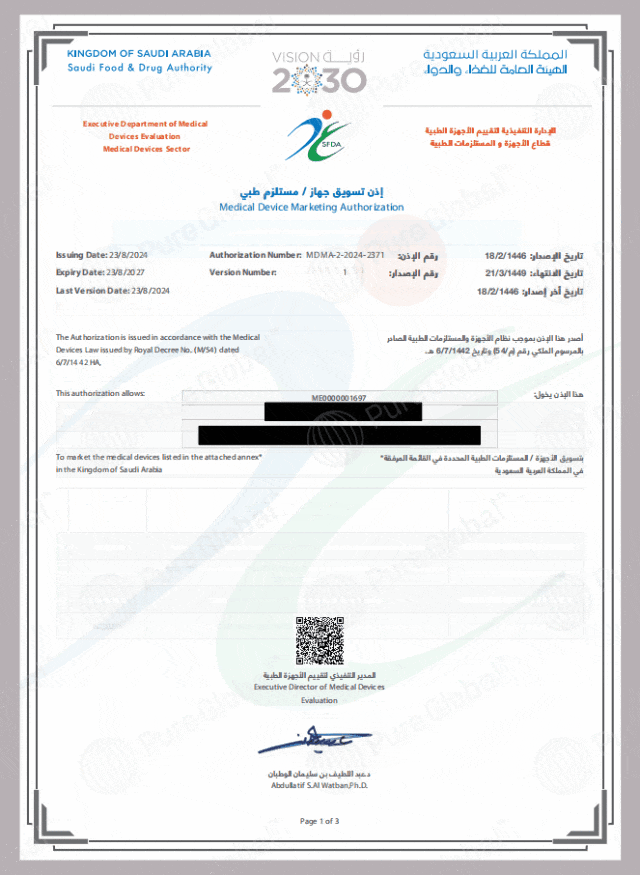 3.  产品根据TFA MD或TFA IVD的不同法规要求,通过沙特当地代表进行提交,通过审批的产品获批MDMA证书;
