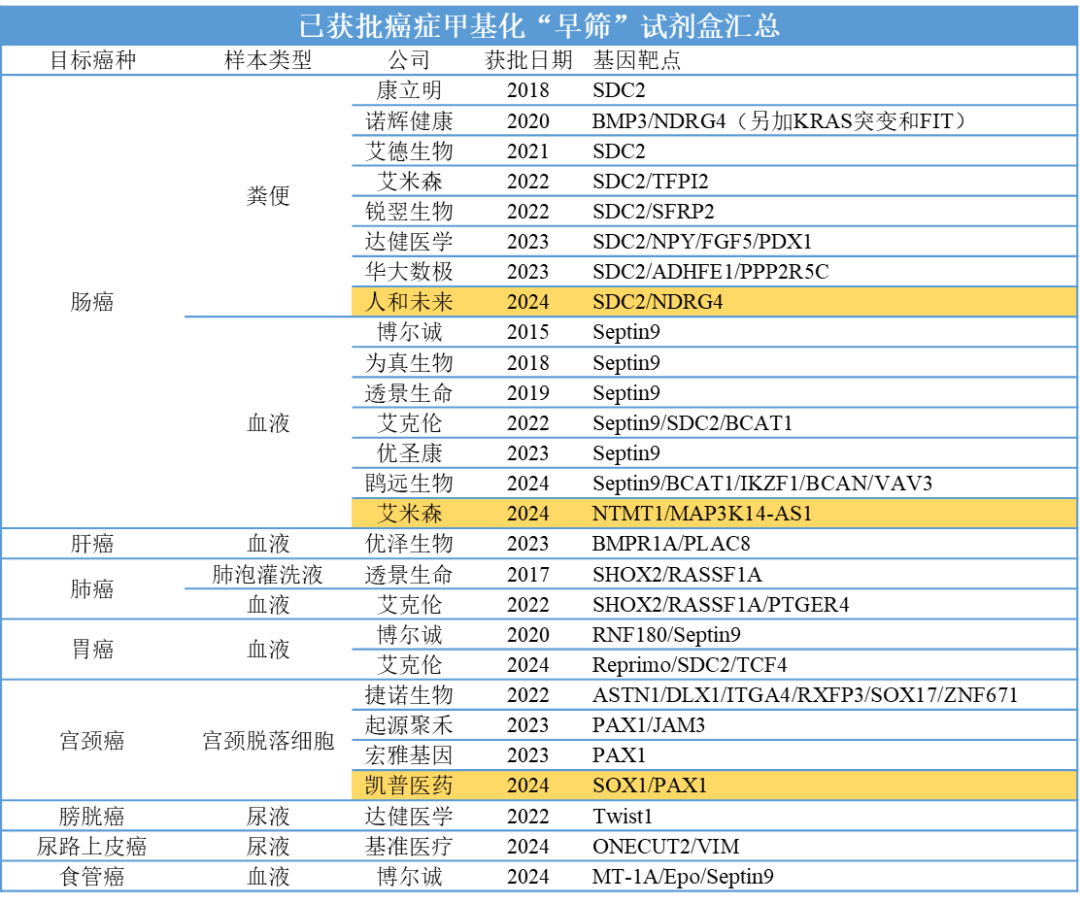 一个月时间内,NMPA新批准了三个甲基化试剂盒(标黄),今年已经有7个甲基化试剂盒获批!你就说卷不卷吧。。
