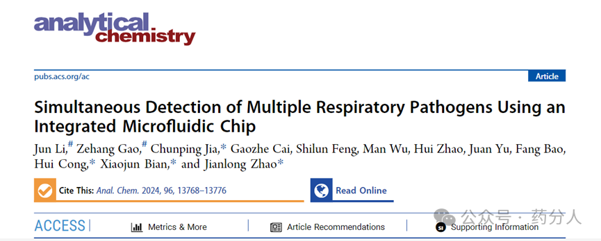 参考:Jun Li, Zehang Gao, Chunping Jia, et al. Simultaneous Detection of Multiple Respiratory Pathogens Using anIntegrated Microfluidic Chip. Anal.Chem. 2024,96,13768-13776. 声明:本文仅做学习交流,非商业用途。