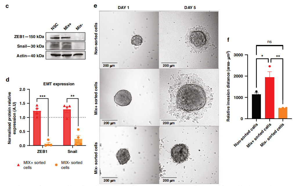 MIX分选细胞表达上皮间质转化(EMT)的标记物和功能特性