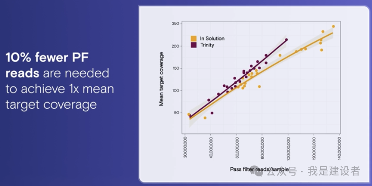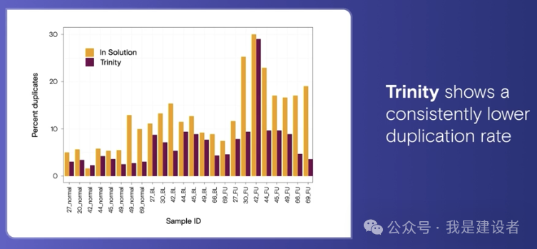 Element现在发布的是Trinity exome产品,但Trinity应用理论上可以不局限于exome。客户自己的panel,如果使用的是基于Twist或者IDT的DNA探针,应该可以立即与Trinity兼容。虽然不管panel大小,都可以实现兼容,但比外显子组更大的panel肯定效果更好。较小的面板所需要的起始输入量就会增加,毕竟所要捕获的分子占输入样本的比例越来越小。持续增加扩展兼容和支持不同的捕获提供商是Element接下来要做的工作。