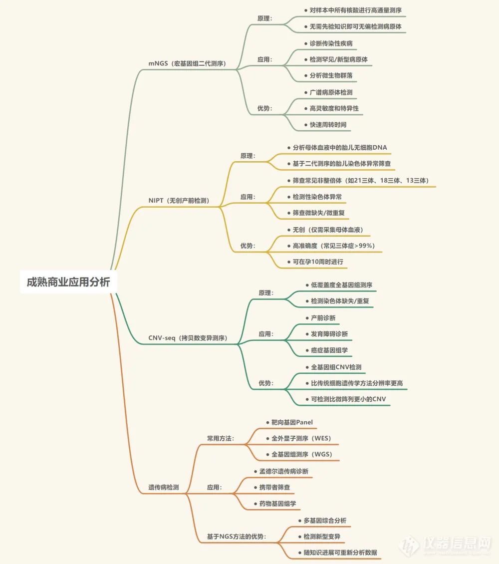 中国基因测序行业近年来经历了从贴牌代工到自主创新的显著转变,逐步实现了技术突破和产业升级。在行业发展的初期,国内企业主要通过贴牌和OEM方式引进国外先进技术和设备。2014年,华大基因推出的BGISEQ-1000和BGISEQ-100测序仪实际上是基于Life Technologies的Ion Torrent平台。同年前后,达安基因、博奥生物等企业也相继推出了基于Ion Torrent平台的测序仪产品,贝瑞基因则与Illumina合作,推出了贴牌的NextSeq CN500测序仪。那个时候国内企业通过与国际品牌的合作,迅速掌握了测序技术和产品,但核心技术仍然掌握在国外企业手中。随着市场需求的增长和政策支持的加强,国内企业开始加大自主研发投入,逐步实现技术自主化。2013年,华大基因收购了美国Complete Genomics公司,开启了测序技术的内化过程。2015年,华大基因推出了自主研发的BGISEQ-500测序仪,并于2016年获批上市。此后,华大基因在2017年至2018年间陆续推出了BGISEQ-50、MGISEQ-2000和MGISEQ-200等多款自主测序仪。此外,燃石医学、诺禾致源等企业也相继推出了自主研发的测序试剂盒产品,进一步巩固了国内在基因测序领域的自主研发能力。这一阶段标志着国内企业从零起步,成功实现了技术突破,建立了自主研发的核心竞争力。近年来,国产测序仪在性能和功能上取得了显著提升。以真迈生物为例,其推出的SURFSeq Q测序仪每天的数据输出能力达到9 Tb,成为全球最高之一。这一创新不仅在技术规格上具有竞争力,更通过用户友好型设计满足了特定用户需求,如易用性、与现有系统的兼容性和操作灵活性,体现了从传统的测序吞吐量指标向以用户为中心的交付效率指标的转变。此外,真迈生物在粤港澳大湾区和长三角地区建立了双中心布局,提升了其运营能力和市场影响力,已在50多个国家安装了400多台设备,海外收入超过30%,其强大的国际竞争力日益强大。在产业生态构建方面,华大基因等龙头企业不仅自身持续创新,还通过授权贴牌测序仪,形成了产业联盟。这种战略合作促进了上游测序仪制造、中游测序服务及下游应用开发的协同发展,完善了基因测序的产业生态。上游的测序仪制造、中游的测序服务以及下游的应用开发等细分领域逐步成熟,形成了完整的产业链条。同时,政策支持力度的加大促进了无创产前检测(NIPT)、肿瘤基因检测、微生物宏基因组测序(mNGS)、染色体拷贝数变异检测(CNV-seq)和遗传病检测等应用场景的不断拓展,推动了整个行业的快速发展。目前测序的成熟商业应用领域国产测序仪表现出强劲的市场竞争力。宏基因组测序领域,基于高通量测序技术,mNGS能够全面分析微生物群落的组成和功能,广泛应用于疾病诊断和环境监测。国产品牌的市场份额显著上升,2023年超过60%,华大智造MGI成为市场占有率最高的品牌,真迈生物和赛陆等新兴品牌也开始崭露头角。这一变化得益于国产品牌在产品更新和商业化策略方面的努力,如MGI在2022年推出的极速测序仪G99和真迈推出的FASTA300等机型,满足了病原检测对测序仪的特殊要求。无创产前检测领域,利用母体血液中的胎儿游离DNA进行检测,NIPT能够早期筛查染色体异常,如唐氏综合征。国内品牌已与国际品牌并驾齐驱,华大基因单独占比最高,领先其他竞争对手,博圣完成转型后迅速崛起,合作实验室数量达22家,NIPT在核心医院的入院占比已超过80%,显示出该技术的广泛应用。染色体拷贝数变异检测领域,通过测序技术检测染色体片段的缺失或重复,CNV-seq在遗传病诊断和肿瘤研究中具有重要应用。国产品牌如贝瑞基因、华大和安诺优达等,通过自主研发和技术创新,正引领从芯片法向测序法的技术变革。到2023年底,多个国产企业的CNV-seq试剂盒获批,进一步推动了测序法的普及和应用。遗传病检测领域,基因测序能够识别导至遗传病的基因变异,促进个性化医疗的发展。尽管Illumina仍保持领先地位,国产品牌通过自主研发快速缩小了差距,华大基因的MGISEQ2000在多个临检项目中占比均很高,纳昂达等国产品牌在探针等上游产品方面也在逐步替代进口产品。这些进展不仅提升了检测的准确性和效率,也降低了检测成本,使更多患者受益。中国基因测序行业从跟跑到并跑再到领跑的跨越并不遥远。持续加大研发投入,有助于缩小与国际先进水平的差距;加强产学研合作,推动前沿技术的突破和产业化应用;广泛拓展应用场景,推动基因测序在医疗健康、农业等领域的深入应用;完善标准体系,提升产品质量和国际竞争力;以及加强国际合作,积极参与全球基因测序产业链分工,都是未来行业需要重点关注的方面。随着国产测序仪在各细分领域的持续突破,中国有望在全球基因测序市场中占据更加重要的地位,推动精准医疗和生命科学研究的进一步发展,巩固中国在基因测序领域的领先地位。国产测序仪的快速发展得益于多方面因素,包括持续的技术创新、针对本土市场需求的产品定制、完善的产业链布局以及积极的商业化策略。随着国产测序仪在微生物宏基因组测序、无创产前检测、染色体拷贝数变异检测和遗传病检测等各细分领域的持续突破,中国有望在全球基因测序市场中占据更加重要的地位。未来,更多创新性的国产测序技术和产品将推动精准医疗和生命科学研究的进一步发展,进一步巩固中国在基因测序领域的领先地位。
