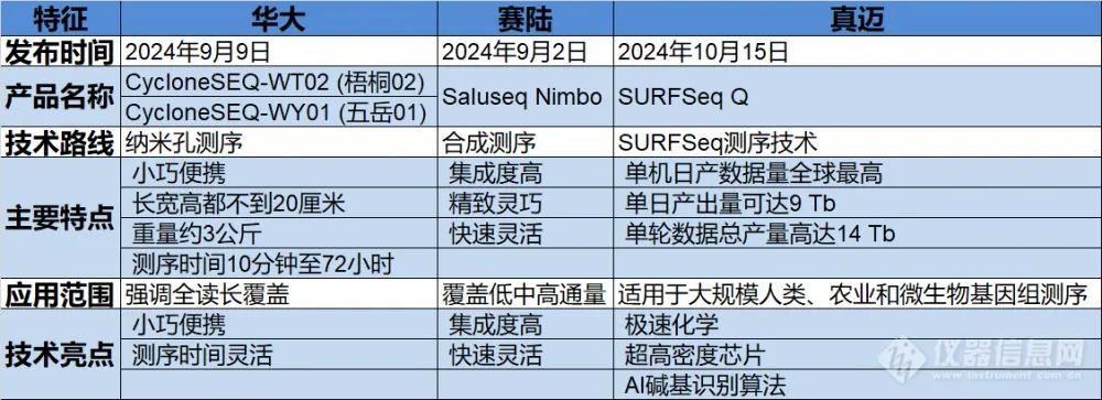 秋天是收获的季节,这个秋天华大、赛陆、真迈三家生命科学领域的领军企业相继发布了重磅产品,为基因测序技术的发展注入了新的活力。这些创新产品不仅展示了中国在生命科学领域的技术实力,也为全球科研工作者和医疗机构提供了更多先进的工具选择。三家公司的产品信息整理如下: