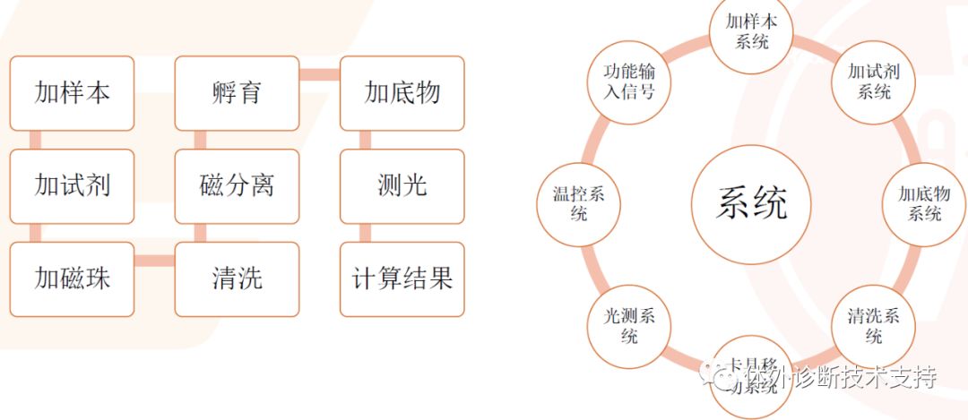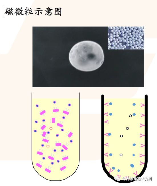 全自动化学发光免疫分析仪实现各步反应的自动化、温度控制、结果输出等。 磁微粒指的是nm级别的磁性颗粒,表面带有活性基团; 磁微粒可以利用表面的活性基团与抗体、抗原、链霉亲和素连接; 较微孔板扩大抗原抗体结合表面积,增加抗原或抗体的结合量,提高检测灵敏度。