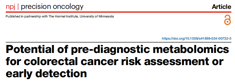 结直肠癌(CRC)是全球癌症相关死亡的第二大原因,预计到2021年将有190万例病例和90.4万例死亡。CRC通常从癌前病变缓慢发展为恶性肿瘤病变,为了早期发现结直肠癌及其前体,已经开发了各种筛查方式,包括结肠镜检查或粪便血液检查。虽然结肠镜检查被认为是早期发现的金标准,但它是侵入性的,依从性低。粪便血液检查是非侵入性的,但对早期结直肠癌和结直肠癌前体的敏感性有限。进一步的非侵入性方法的发展,提高可接受性,可及性和性能将是非常可取的。近年来,代谢组学已成为一种有前途的癌症筛查方法,包括CRC。代谢组学涉及对生物体液、细胞和组织中的小分子代谢物的系统研究,其在癌症生物标志物发现领域的潜在应用研究正在迅速扩大。 近日,杂志npj Precision Oncology上发表了一篇题为“Potential of pre-diagnostic metabolomics for colorectal cancer risk assessment or early detection”的综述文章。本系统综述的目的是评估诊断前样本中CRC或其前体代谢物生物标志物的现有证据。文章强调了代谢物panel的巨大潜力,然而,分析方法的差异和缺乏标准化的验证过程强调了方法统一的必要性。通过标准化技术,确保彻底的验证,并检查不同CRC阶段的代谢变化,代谢组学可能有潜力有效地纳入临床实践,有可能改变CRC筛查策略,以适应个性化和精准医疗的新兴焦点。 图片来源:npj Precision Oncology 主要内容 研究特点 截至2023年12月30日发表的26项关于代谢物生物标志物预测性能的研究被纳入本系统综述。研究结果包括14项CRC研究,2项结肠癌研究,2项腺瘤研究,4项息肉研究,2项腺瘤和息肉联合研究,2项腺瘤和CRC联合研究。研究中使用的生物标本主要包括血液,尿液以及粪便。用于代谢组学分析的技术主要是液相色谱-质谱(LC-MS)和质谱与不同技术的组合。 单个代谢物的性能 在纳入的研究中,有一半报告了单个代谢物的性能,11项研究报告了一个代谢物panel的性能。单个代谢物研究报告了总共101种代谢物的显著相关性(如下图)。在与CRC负相关的59种代谢物中,76%是脂质或类脂质分子,主要是烷基酰溶血磷脂酰胆碱、磷脂酰胆碱和鞘磷脂。在42个与CRC正相关的个体代谢物中,67%是脂质和类脂分子,主要是胆汁酸和脂肪酰基肉碱。血浆胆汁酸,包括糖胆酸、牛磺胆酸、糖鹅去氧胆酸、牛磺酸去氧胆酸、糖去氧胆酸和牛磺酸去氧胆酸,在两项大型队列研究中被报道与CRC呈正相关。这可能反映了这些胆汁酸在癌症发展中至关重要的细胞功能中的重要作用,如细胞膜完整性、能量储存和信号传导。 对于CRC前体,有4种代谢物(C18:2-c亚油酸、甘氨酸、C36:3磷脂酰胆碱缩醛磷脂和苯乙酰谷氨酰胺)和5种代谢物(omega-6多不饱和脂肪酸、反式脂肪酸、蛋氨酸亚硫酰/蛋氨酸比、C18:1鞘磷脂和C54:8甘油三酯)分别与CRC前体呈显著负相关和正相关。 具体见原文表2,显示了CRC及其前体的个体代谢物生物标志物。 个体代谢物与CRC风险之间的关联。 图片来源:npj Precision Oncology 代谢物组panel的性能 原文表3显示了基于血液的生物标志物panel的性能,其中最有效的panel的AUC达到1.0,灵敏度和特异性为100% 。该panel由26种代谢物组成,并使用了机器学习方法。原文表4(如下表)显示了粪便和尿液样本的代谢物生物标志物。三个分析粪便样本panel,报告的AUC为0.95,0.94和0.97。使用四种代谢物和血红蛋白水平来区分晚期腺瘤,灵敏度为70%,特异性为100%。对于基于尿液的代谢物组,由18种代谢物组成的panel区分息肉病例和非息肉病例的AUC最高,为0.752,灵敏度为88.9%,特异性为50.2%。另一组包括四种代谢物,以及参与者的年龄、性别和吸烟状况的panel,用于检测腺瘤性息肉,在中国队列中进行外部验证的AUC为0.72,敏感性为82.6%,特异性为42.4%。 预测粪便和尿液生物标本中CRC代谢物panel的性能特征。 图片来源:npj Precision Oncology 代谢物生物标志物研究领域面临着重大挑战 个体代谢物和代谢物组之间的比较揭示了后者作为CRC筛查的筛查工具或风险评估工具具有更大的潜力。相比个体代谢物,代谢物panel的研究显示出良好的预测或诊断能力,表明代谢物panel能更好反映生物系统复杂性,解决疾病异质性,并提供集体代谢改变见解。 代谢物生物标志物研究领域也面临着重大挑战。代谢物的稳定性会随时间和不同的样品采集方法而变化,彻底的独立验证对于降低高估预测能力的风险至关重要。外部验证不仅可证实发现的稳健性,而且还确定了在不同人口统计学或临床环境中的潜在局限性,确保预测模型可以可靠地应用于各种现实世界的场景。 代谢物生物标志物研究的未来方向 未来研究的一个重要领域,即探索癌症进展背景下代谢物生物标志物改变的时间性,风险预测生物标志物可能应用于筛查起始年龄之前的个体,促进风险评估。在CRC进展的不同阶段,代谢物谱可能表现出不同的模式,识别和利用这些细微的代谢组可以提高基于代谢物的诊断的准确性,从而更精确地区分结直肠癌、腺瘤和息肉。 代谢物可从多种生物标本中提取,基于不同生物标本的结果只有部分可比性。在医疗实践中,与血液分析的复杂性相比,尿液和粪便的简单性提供了独特的优势。然而,由于昼夜节律和饮食导至代谢物浓度的变化,需要标准化收集时间和控制营养消耗模式。标准化的样本采集条件,以及仔细确定潜在的非肿瘤相关决定因素,对于确定代谢组学在CRC风险评估或早期检测中的