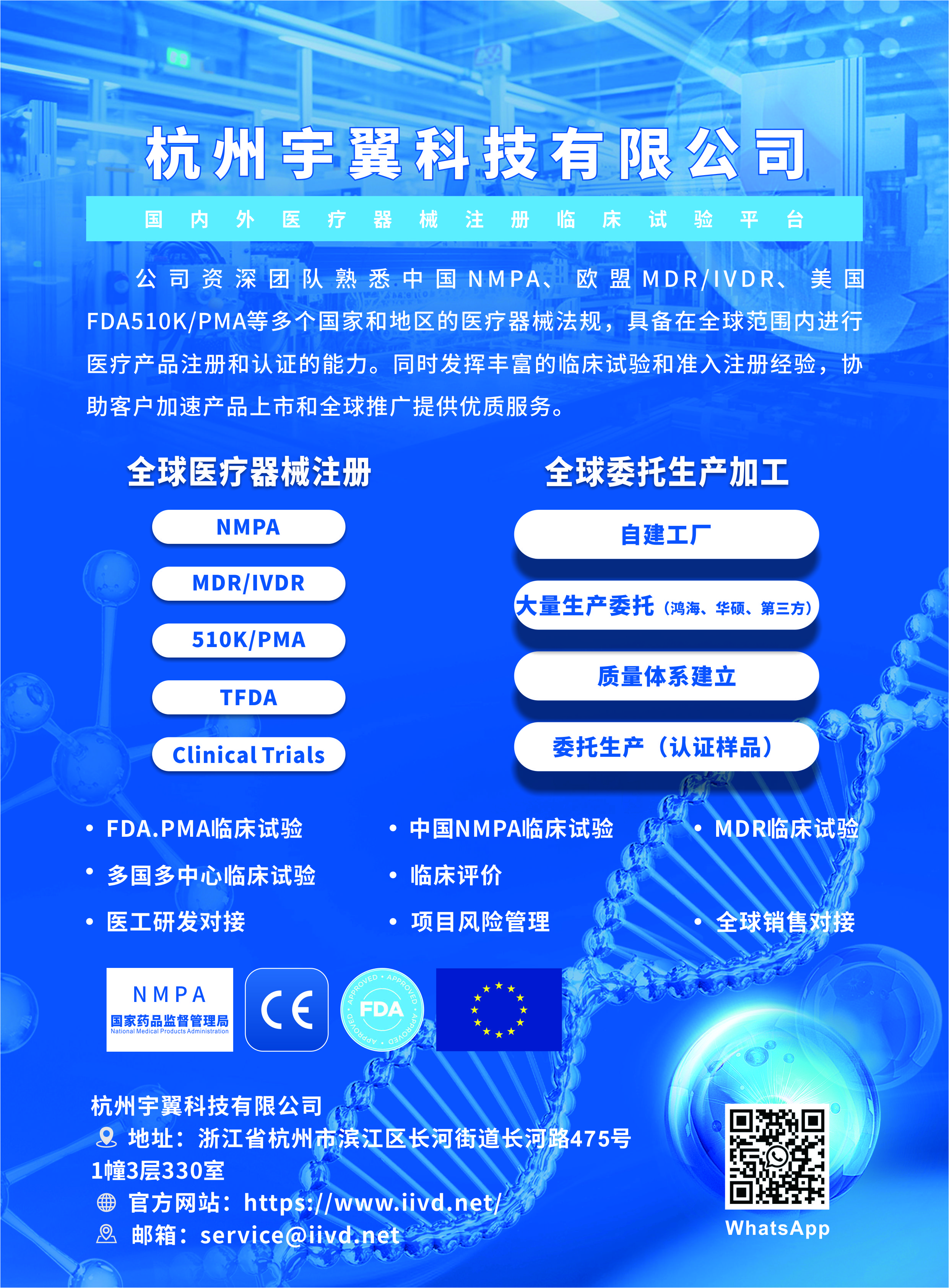 全球医疗器械注册 Global Medical Device Registration 1. NMPA 2. MDR/IVDR 3. 510K/PMA 4. TFDA 5. Clinical Trials