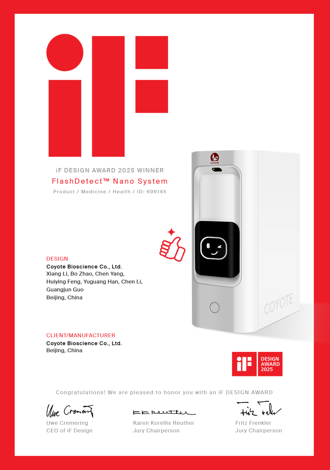 从实验室到设计殿堂,分子POCT 迎来高光时刻!近日,2025年德国iF设计奖揭晓,卡尤迪全自动分子POCT机器人“闪测”Nano凭借其前瞻性设计与创新科技,以总分305分(远超270分平均获奖线)的优异成绩,从来自66个国家的近11000件参赛作品中脱颖而出,强势斩获“医疗/健康”类别设计大奖! 作为全球工业设计领域的权威奖项,iF设计奖素有“设计界奥斯卡”之称,由131位独立设计专家组成的国际评审团从差异化、功能、形态、理念及可持续性五大维度严格评选,仅0.7%的作品摘得金奖。评审团认为,“闪测”Nano在差异化创新、功能易用性与设计美学方面的表现尤为优异。 极简设计 从复杂操作到“一键完成”的效率革命 传统PCR检测操作复杂,需历经样本处理、核酸扩增、结果分析等十余项步骤,对专业性与时间成本要求极高。 “闪测”Nano通过智能化集成设计,将全流程浓缩为“一键式”极简操作,获得评审团一致性高分认可:搭配“闪测”小闪舱“采检一体”检测试剂盒,最快8分钟即可获取结果,大幅降低操作门槛,有效提升检测效率,让医护人员从繁琐流程中解放,将精力聚焦于更核心的医疗工作。 ⬆️点击观看“闪测”Nano操作流程 美学与功能的平衡 让技术领先于行业,更温暖于人心 “闪测”Nano小巧便携的设计可轻松装入背包,化身“移动实验室”,方便用户随时随地开展PCR检测,满足更多元化的检测需求。同时,“闪测”Nano以专业科技融合人文关怀,首次在分子检测设备中引入智能语音助手概念,实现人机情感交互体验,让医疗器械也能传递温度,深受iF评审团青睐。 以设计为桥梁,让科技普惠大众。此次获奖不仅是对“闪测”Nano创新设计的认可,更是卡尤迪品牌理念的有力印证。未来,卡尤迪将坚守“让每一个人都受益于分子诊断”的初心,持续深耕临床领域,拓展设备在急诊筛查、基层医疗等场景的应用,同时探索家庭健康监测新可能,以极简设计与智能科技推动医疗普惠,让高效、精准的分子诊断服务真正融入大众生活。 |