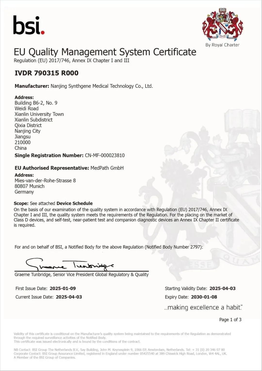 申基医药梅毒自测试剂获得欧盟IVDR自测认证具有极高的含金量,是中国IVD行业在欧洲发展的一座重要里程碑。 全球技术领先性 作为全球首个通过IVDR认证的梅毒自测试剂,表明其检测性能(灵敏度>99%、特异性>99.5%)和安全性完全满足欧盟这一全球最严苛的体外诊断法规要求,技术实力达到国际顶尖水平。 认证难度极高 IVDR新规下,梅毒检测被列为C类高风险产品,需通过欧盟公告机构全面审核(非自我声明),且必须提供完整的临床性能数据、风险管理文件及上市后监管方案。通过率不足30%。 市场准入优势 IVDR认证是进入欧盟市场的强制性通行证,此次认证意味着产品可在欧盟27国及认可CE标志的全球50+国家/地区销售,商业潜力巨大。 行业标杆意义 突破性地解决了自测试剂在用户操作误差控制、结果判读可靠性等方面的技术难题,为同类产品树立了合规范本。 申基医药梅毒自测试剂成功斩获欧盟IVDR认证,不仅标志着中国IVD企业在技术创新和国际化合规领域实现重大突破,更展现了"中国智造"在全球医疗健康产业中的竞争力。 当前,国际贸易环境复杂多变,技术壁垒与监管门槛持续提高,唯有以创新为引擎、以质量为基石,方能赢得国际市场的话语权。期待更多中国企业以申基为范本,以核心技术突破国际标准壁垒,以卓越产品服务全球健康需求,在新时代的全球化浪潮中开辟更广阔的天地。这一认证不仅是企业的里程碑,更是中国医疗产业走向高附加值、高标准输出的新起点。 SYNTHGENE 南京申基医药科技有限公司(Nanjing Synthgene Medical Technology Co., Ltd.)是一家聚焦健康科技,围绕家用健康管理事业,覆盖从健康生活、疾病预防、诊断、到家庭关护的健康养护全程,将自身发展与健康生态圈构筑相结合,致力于成为我国家庭健康管理领域的先进企业,不断为人类健康社会保驾护航。 |