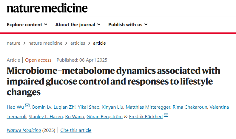 Wu, H., Lv, B., Zhi, L. et al. Microbiome–metabolome dynamics associated with impaired glucose control and responses to lifestyle changes. Nat Med (2025). https://doi.org/10.1038/s41591-025-03642-6