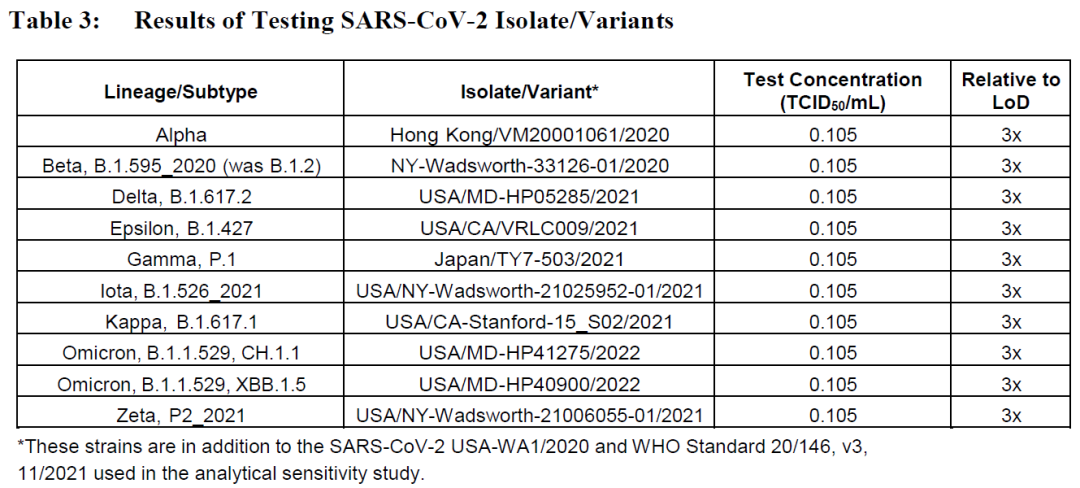 评估测试检测多种病毒分离株/变异株的能力。