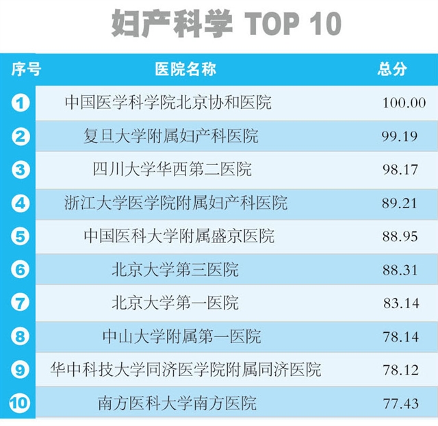 2014年度中国医院科技影响力排行榜(妇产科学)