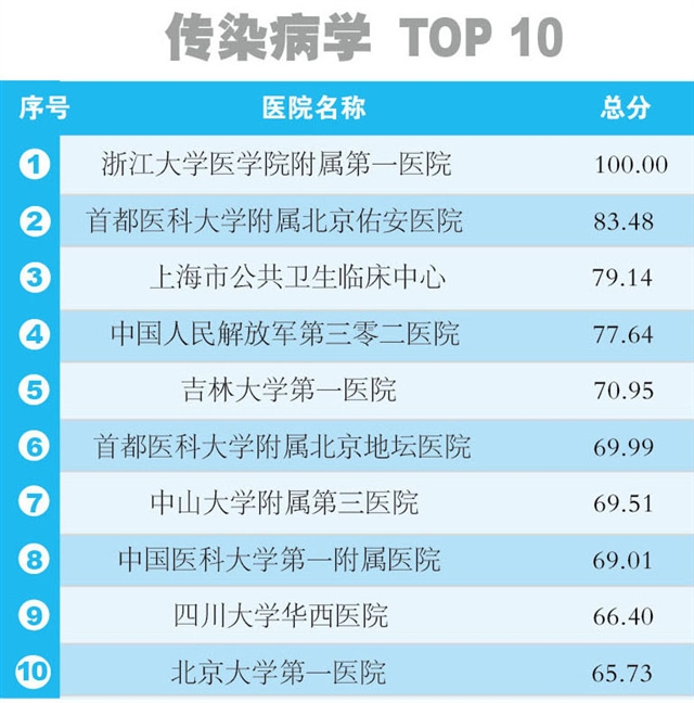 2014年度中国医院科技影响力排行榜(风湿病学与自体免疫学)