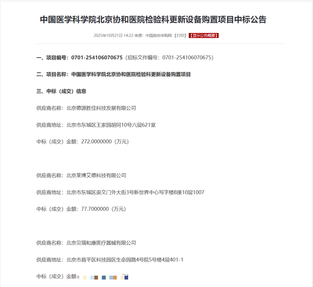 另一个就是最近中标中的眼花缭乱的真迈的设备,今天又中了协和医院检验科的标段,不知道这个标段是真迈的团队在推动,还是圣湘的团队在推动,不重要了,中了就行。