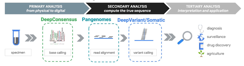 谷歌研究院是谷歌面向公众的科研成果门户,致力于开展计算机科学及相关领域的基础研究和应用研究,推动前沿技术发展,提供对未来科技的深入洞察。他们其中一个小型研究团队早在2015年就开始了一些基础研究工作,将深度学习应用于各种基因组测序挑战,使其更快、更准确、更高效。他们在2016 年赢得了 PrecisionFDA Truth Challenge 挑战赛,在2018年公开发布了这款基于深度学习的变异识别工具 DeepVariant,随后便开启了其在基因组学领域长达十年的探索之旅,陆续开发并发表了一系列应用于基因组学的相关算法和工具。本质上,谷歌在DeepVariant上的开发和持续优化是不带功利性质的,于是谷歌基于DeepVariant所进行的对比研究也代表了一种客观的第三方视角。