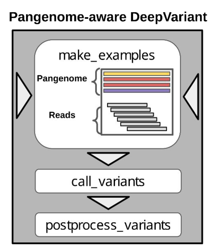 DeepVariant的最新版本v1.9增加了泛基因组感知(pangenome-aware)功能,整合了泛基因组参考图(如人类泛基因组参考联盟HPRC发布的88个单倍型),在pileup图像中同时显示样本读数和泛基因组单倍型对齐信息,使模型能够利用群体遗传先验知识,显著提升在挑战性区域(如同聚物序列和片段重复区域)的检测准确性。