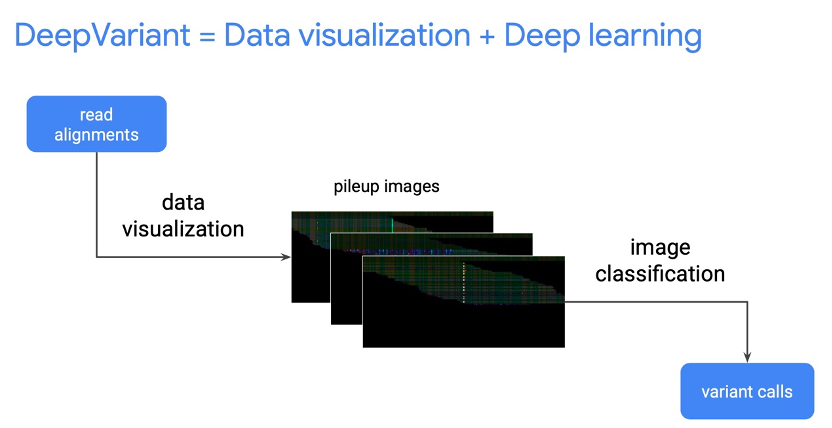 DeepVariant的开发借鉴了谷歌在图像识别方面的经验,将数据可视化与深度学习相融合,采用卷积神经网络(CNN)推理来实现从NGS数据中调用遗传变异。