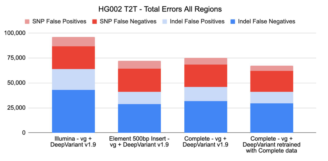 针对IlluminaElement所使用的都是最新版的DeepVariant v1.9针对Complete Genomics T1+产出的数据,DeepVariant v1.9进行了专项优化,产出了这里所提到的专项DeepVariant模型。