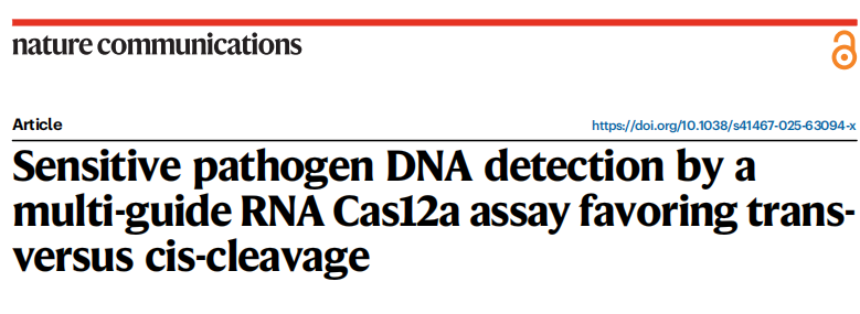 近日,杂志nature communications上发表了一篇题为“Sensitive pathogen DNA detection by a multi-guide RNA Cas12a assay favoring trans- versus cis-cleavage”的文章。作者开发了单管CRISPR结核检测方法ActCRISPR-TB,该方法联用多个RNP来调节反应动力学,在60分钟内达到5拷贝/μL的灵敏度,并在15分钟内检测到阳性患者样本。该方法对成人呼吸道、儿童粪便和成人脑脊液标本的敏感性分别为93%、83%和93%,并在603例临床样本中检测出64%的临床诊断的结核性脑膜炎病例。这种简化的诊断方法,有潜力改善资源有限环境中的分子诊断。